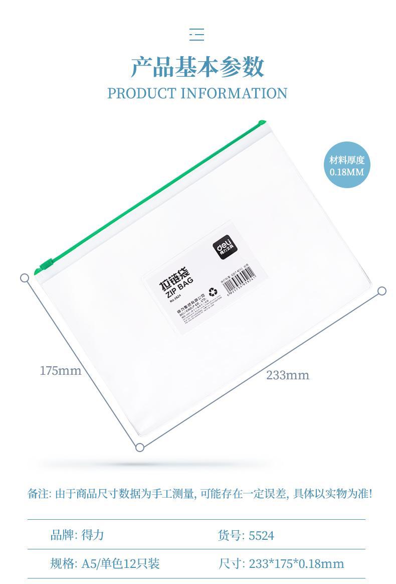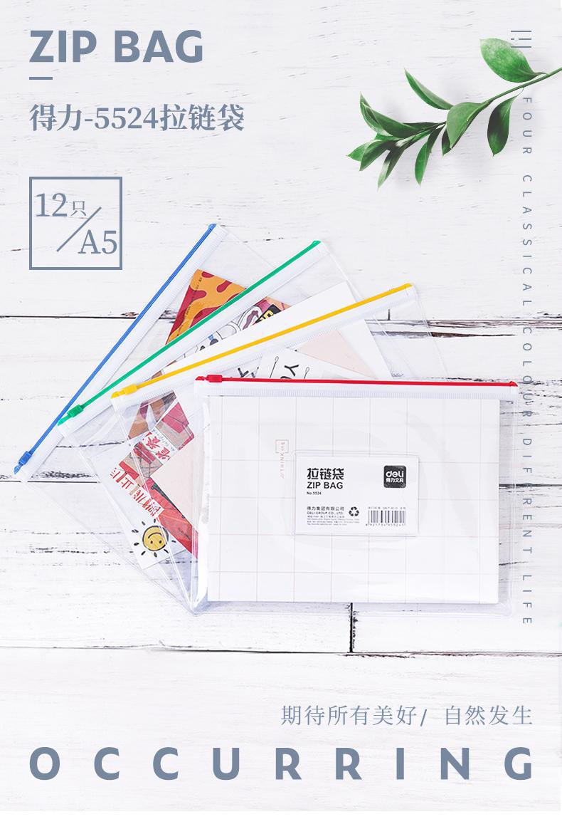 델리 파일백 지퍼백 5524 투명 문구 시험지 보관백 학생용 두꺼운 방수 대용량