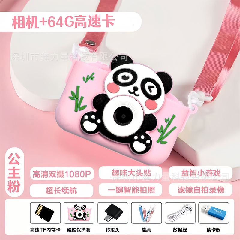 • X16 HD 듀얼 카메라-핑크 팬더+64G 메모리 카드+카드 리더기+어댑터
