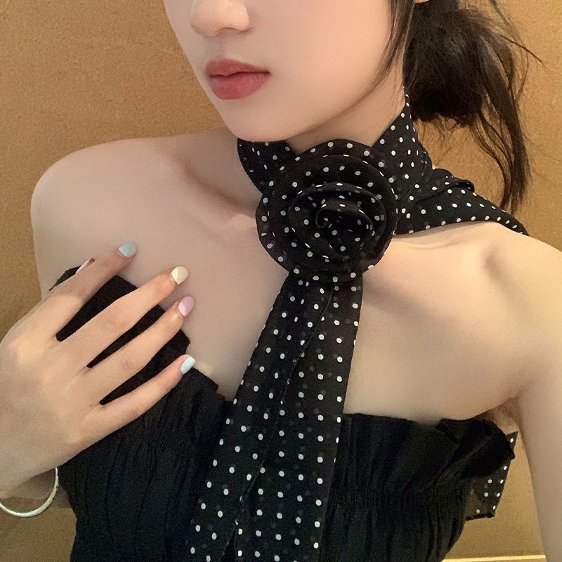 인터넷 연예인 폭발성 웨이브 도트 작은 실크 스카프 로즈 장식 아트 스타일 외국 스타일 Ins 스타일 순수한 욕망 스카프 뜨거운 소녀