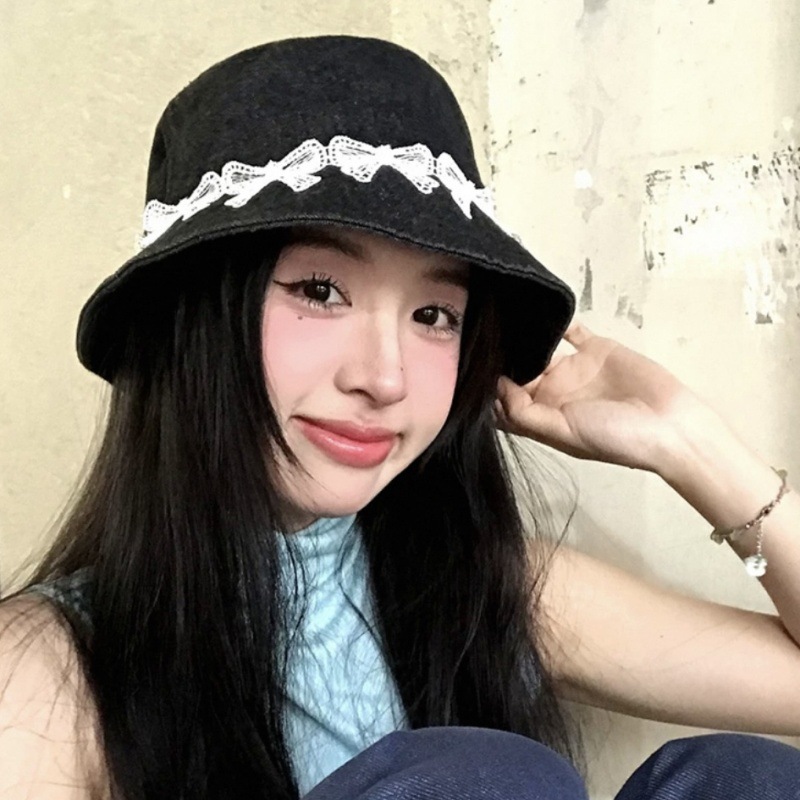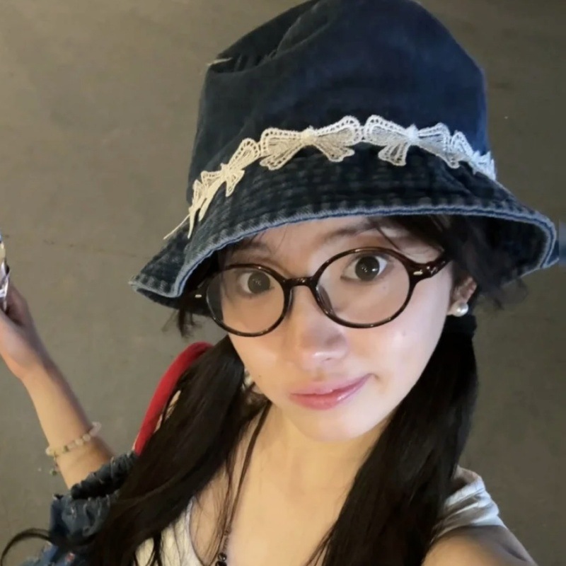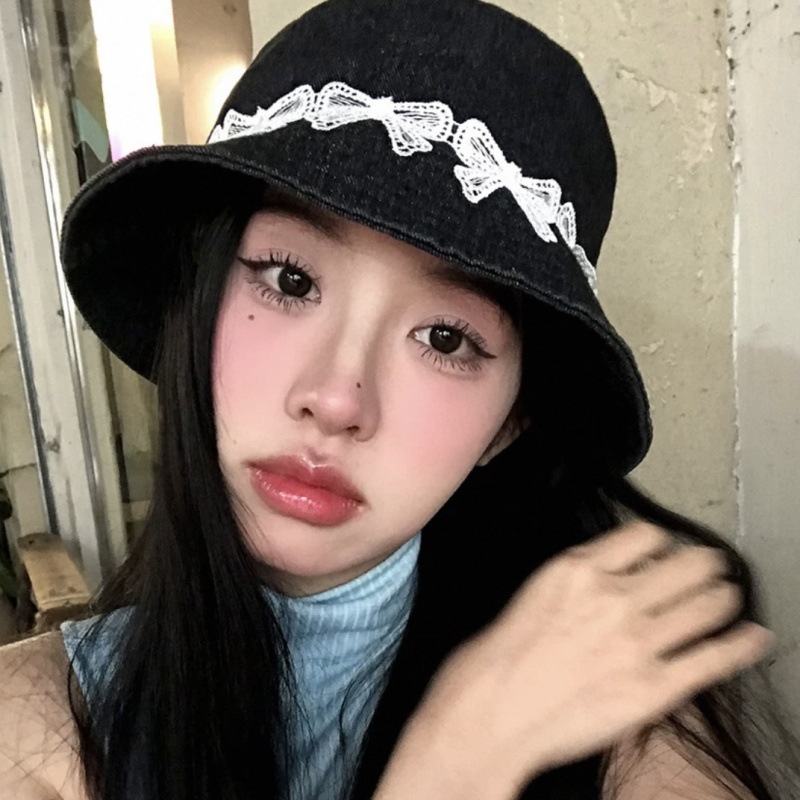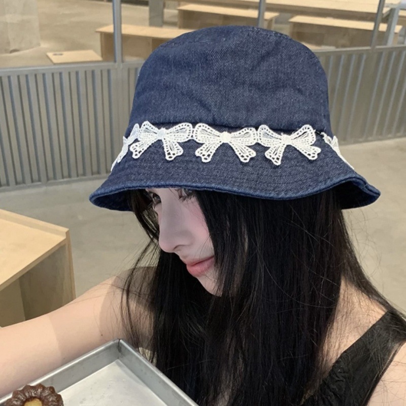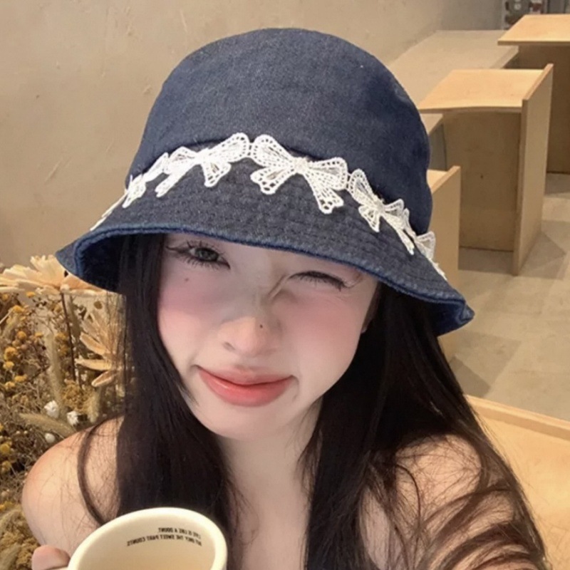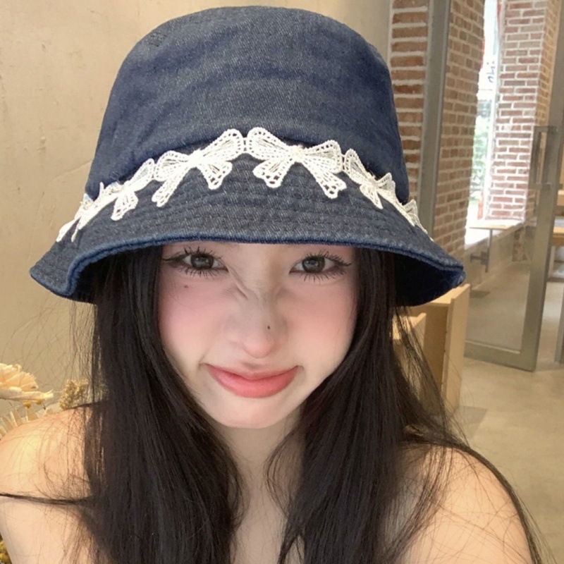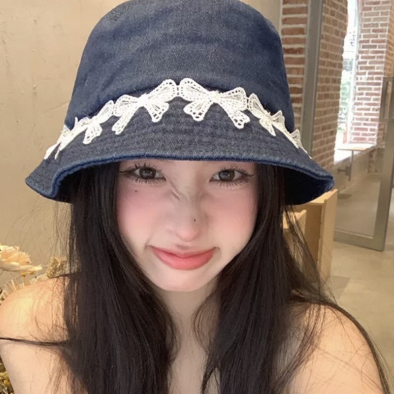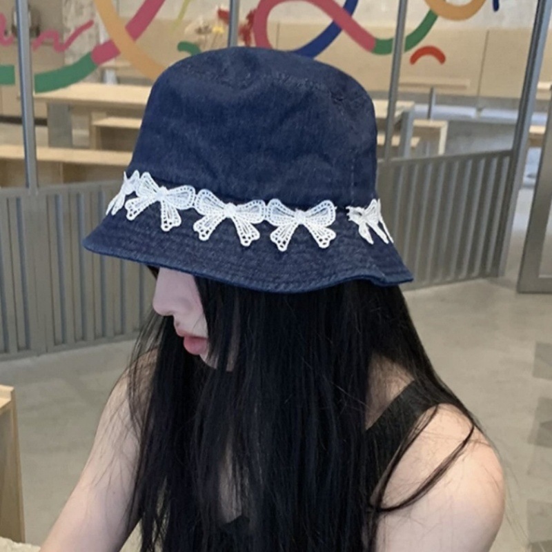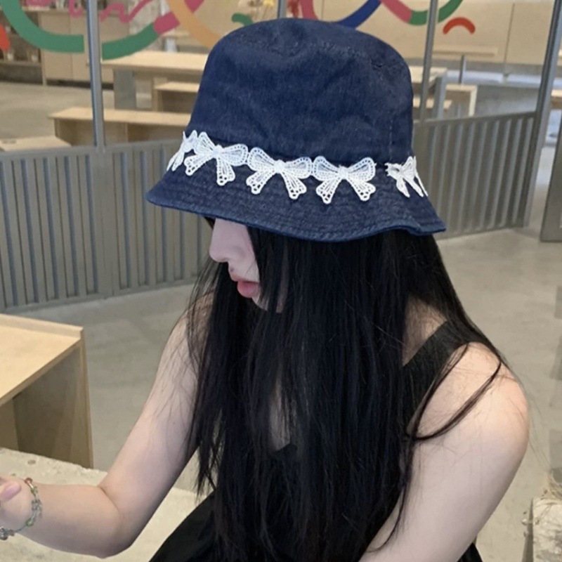 리본 데님 모자, 어부 모자, 자외선 차단 및 차양, 여름 사이클링, 다용도 학생, 인터넷 연예인, 자외선 차단 소녀스토어 가기