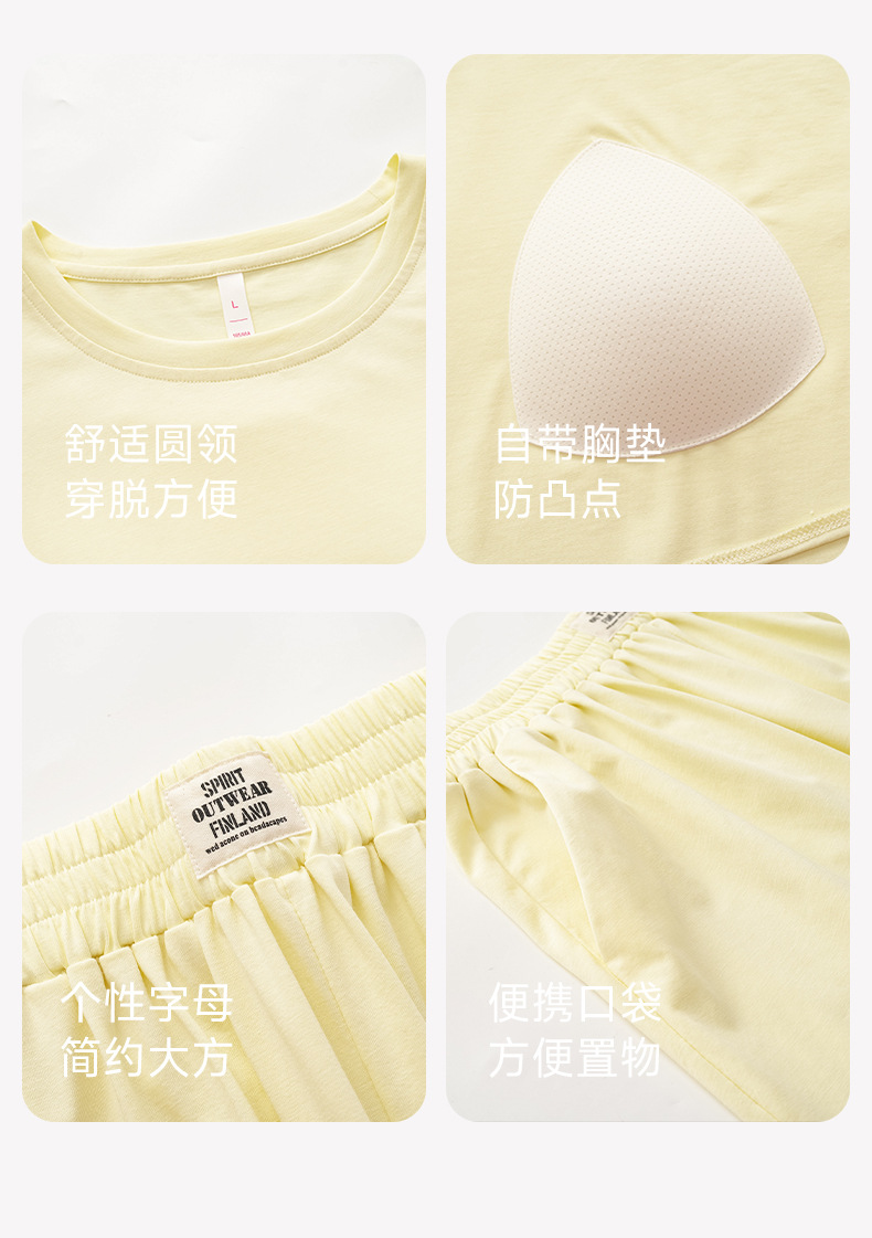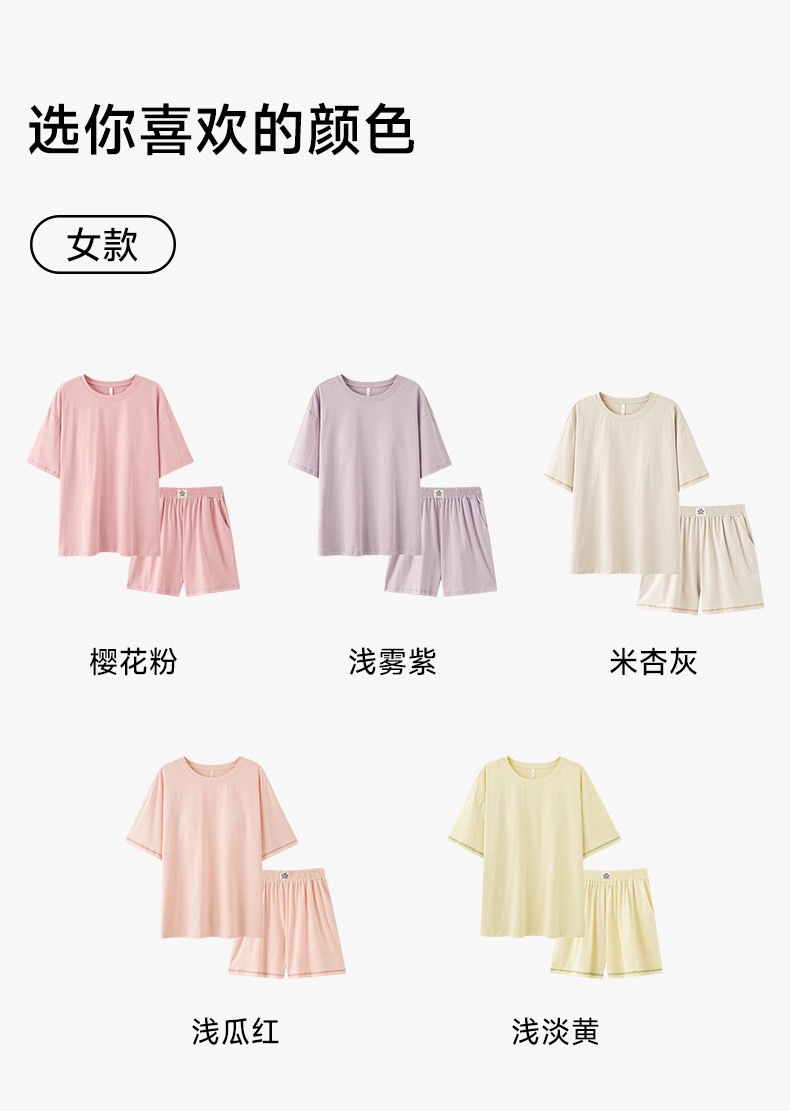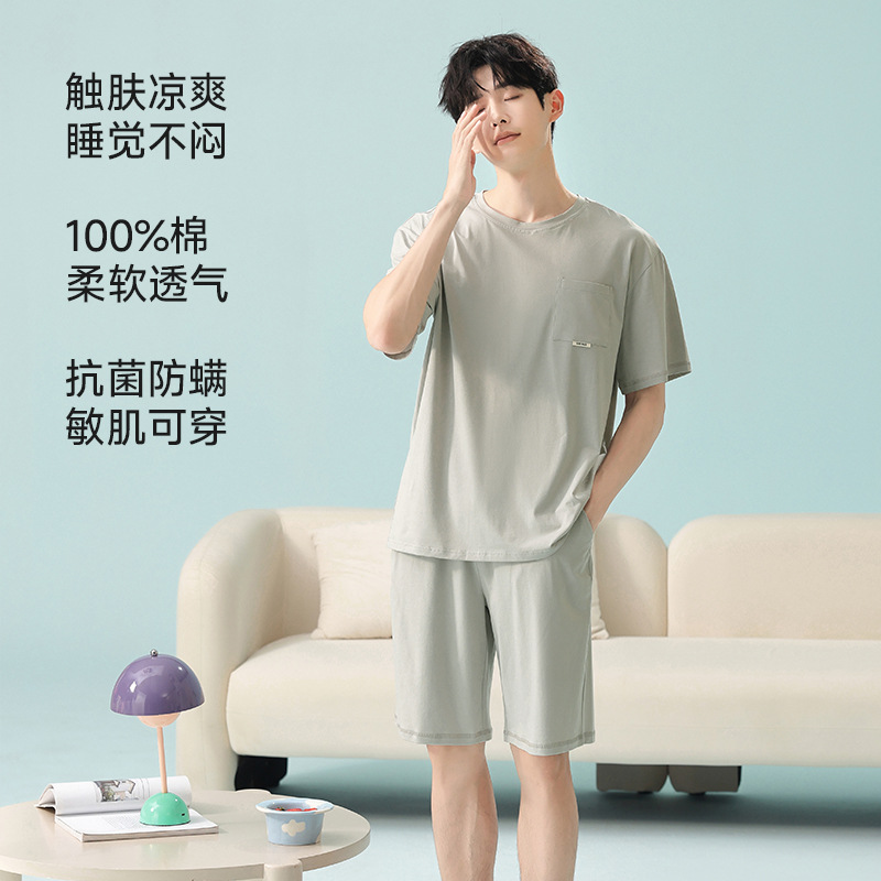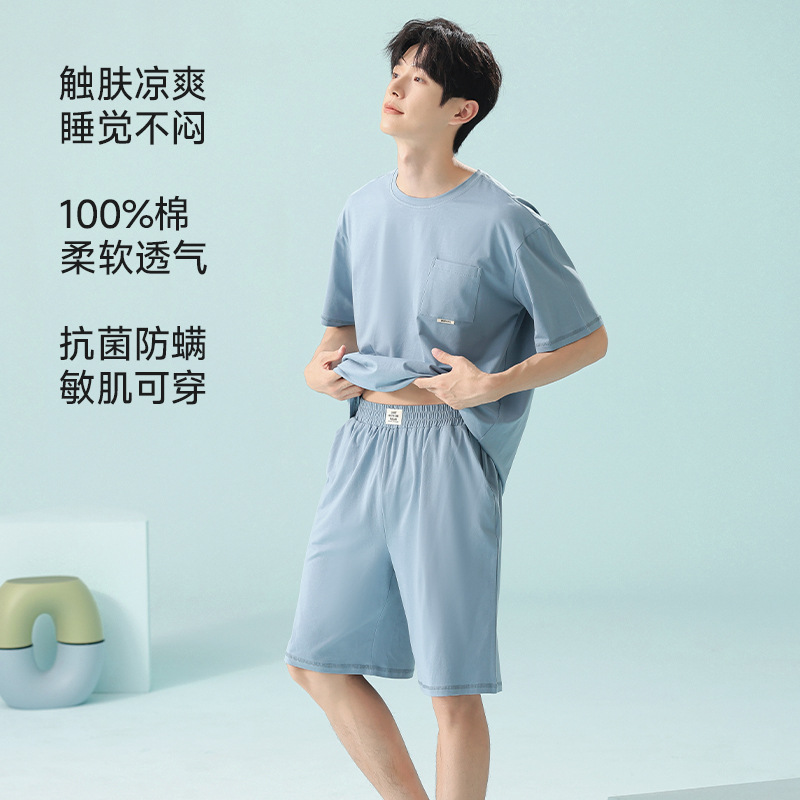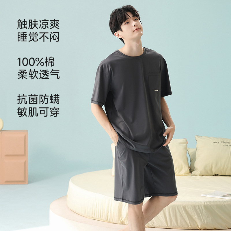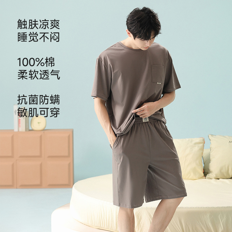 [아이스도자면] 여름 짧은 소매 가슴 패드 여성 커플 잠옷 순면 얇은 남성용 홈 의류 캐주얼 세트