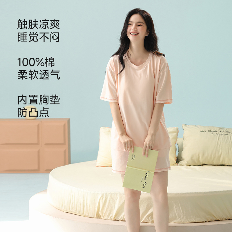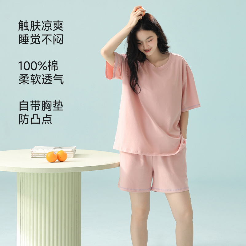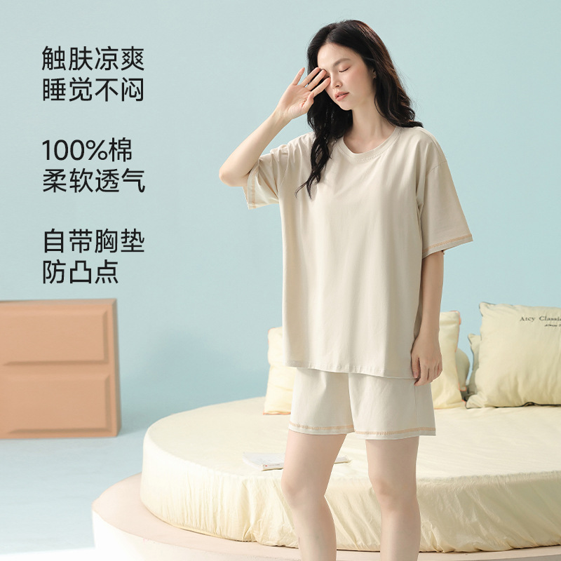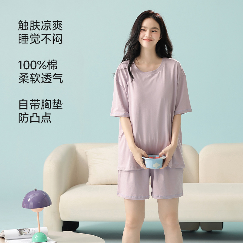 [아이스도자면] 여름 짧은 소매 가슴 패드 여성 커플 잠옷 순면 얇은 남성용 홈 의류 캐주얼 세트스토어 가기