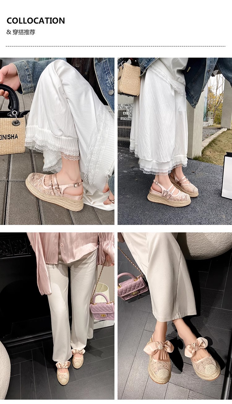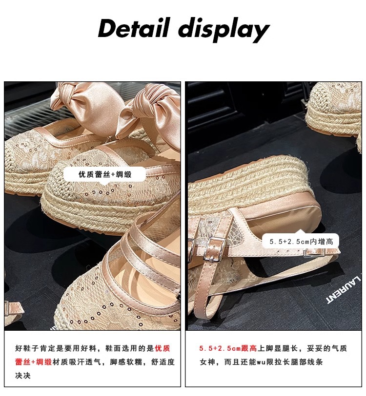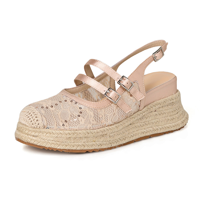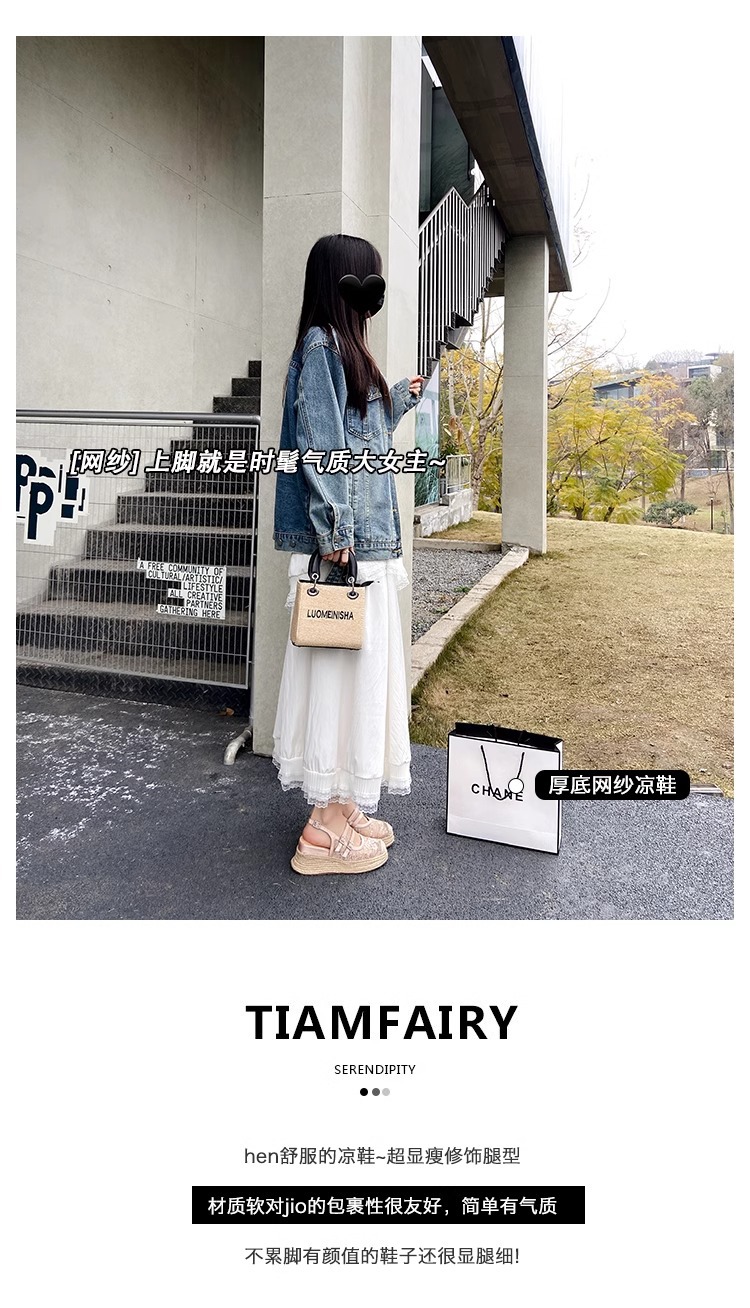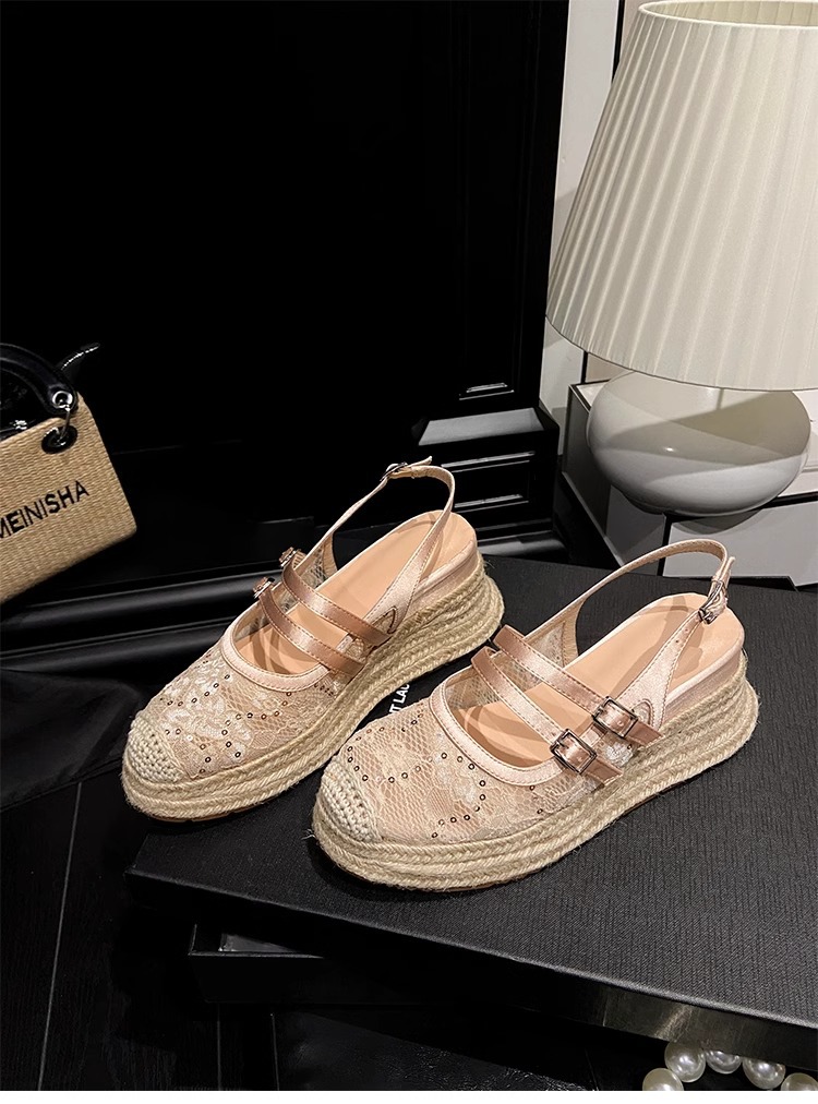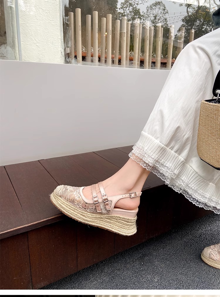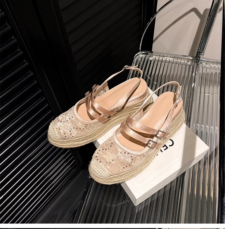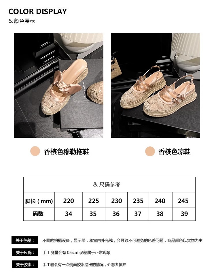 대량 재고 있음 ~ 새로운 웨지 힐 발가락 샌들 여성 라운드 발가락 2025 여름 두꺼운 밑창 뮬러 드래그 모리 여성 밀짚 여성 신발스토어 가기