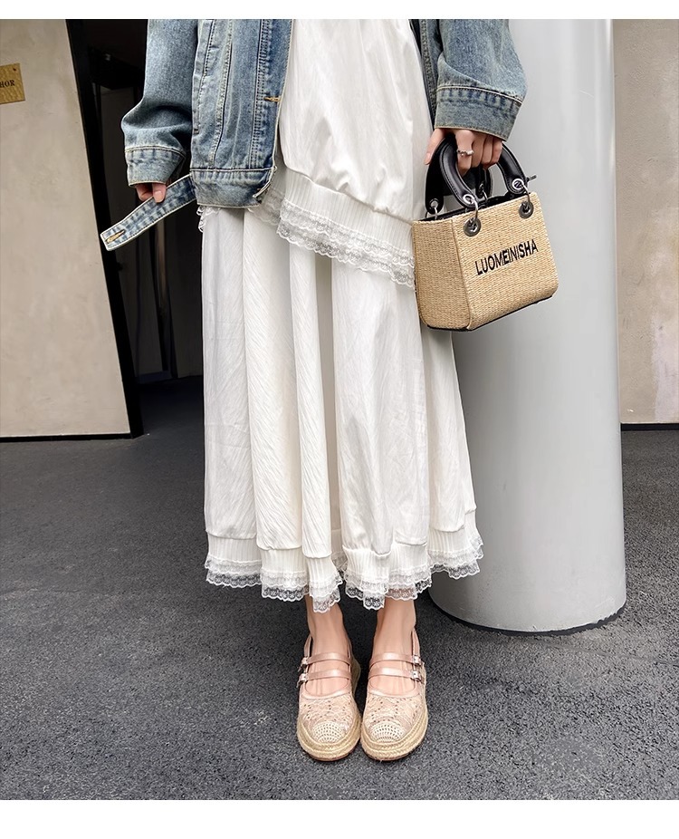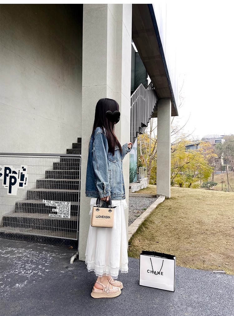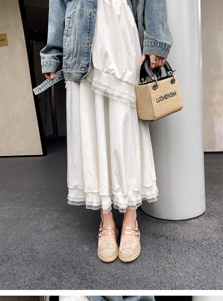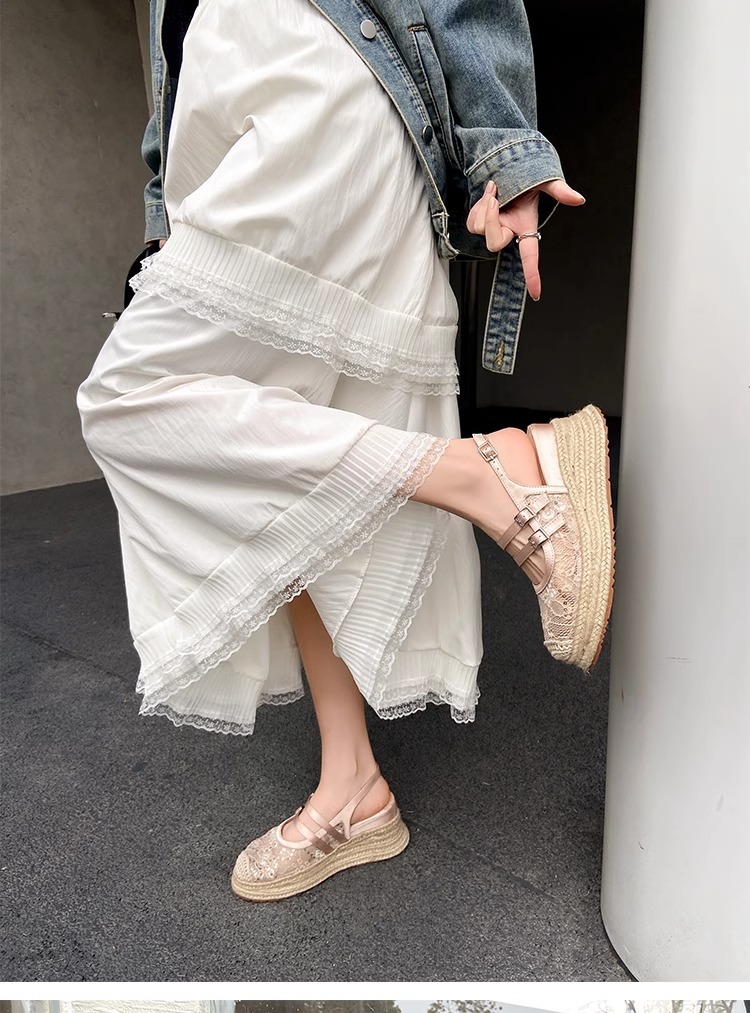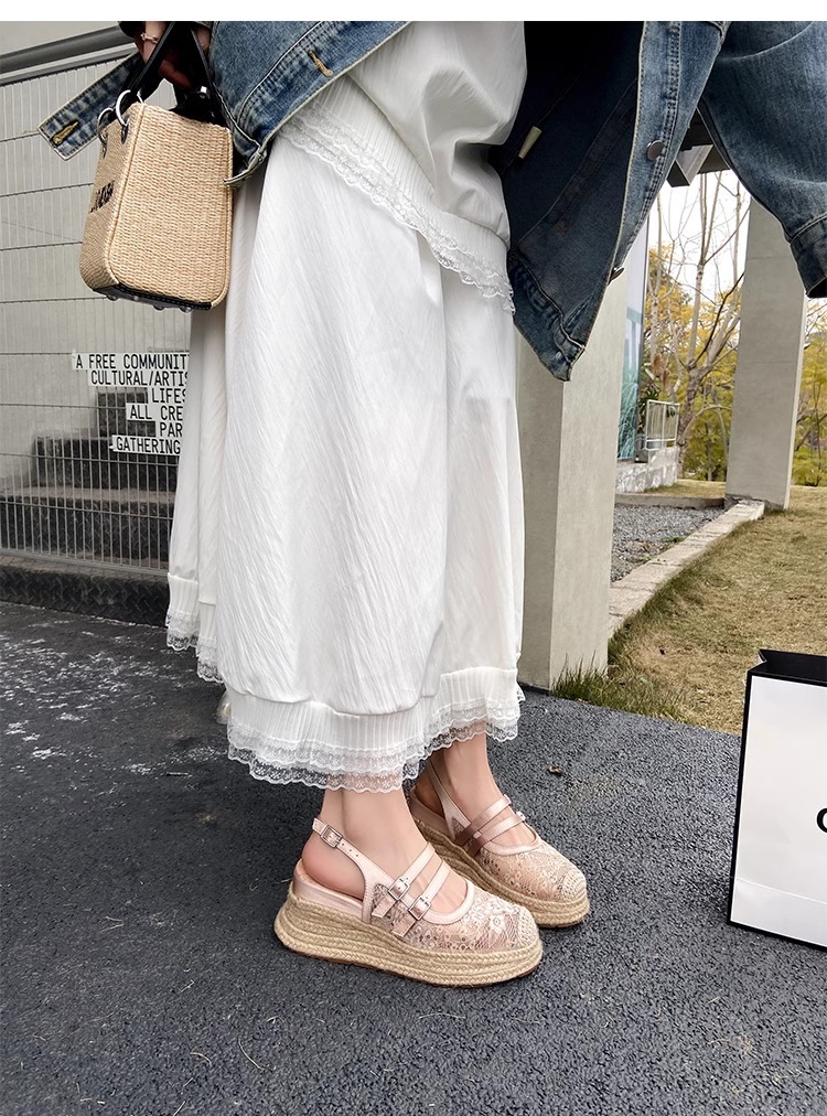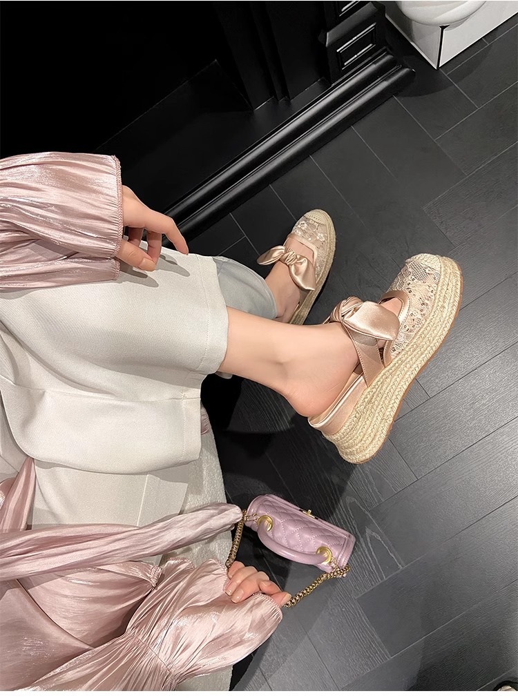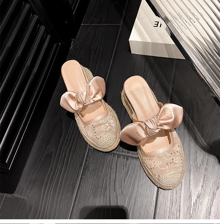 대량 재고 있음 ~ 새로운 웨지 힐 발가락 샌들 여성 라운드 발가락 2025 여름 두꺼운 밑창 뮬러 드래그 모리 여성 밀짚 여성 신발스토어 가기