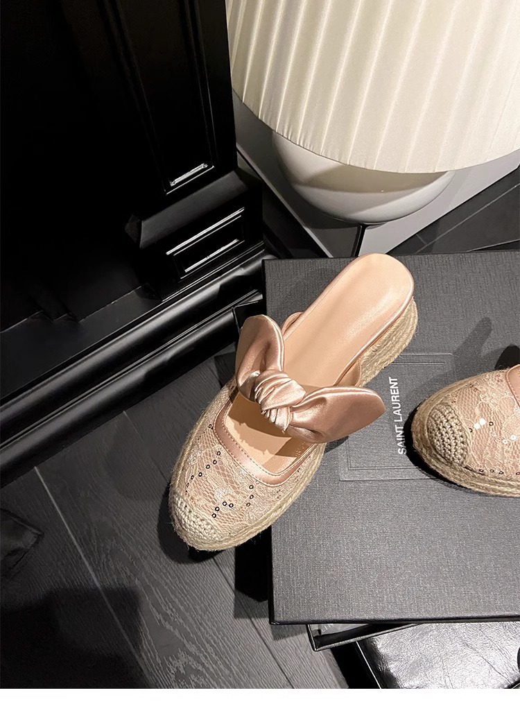 대량 재고 있음 ~ 새로운 웨지 힐 발가락 샌들 여성 라운드 발가락 2025 여름 두꺼운 밑창 뮬러 드래그 모리 여성 밀짚 여성 신발