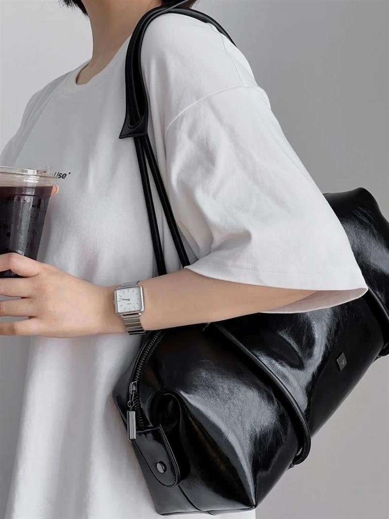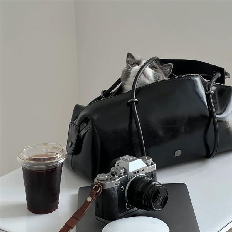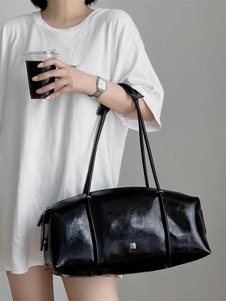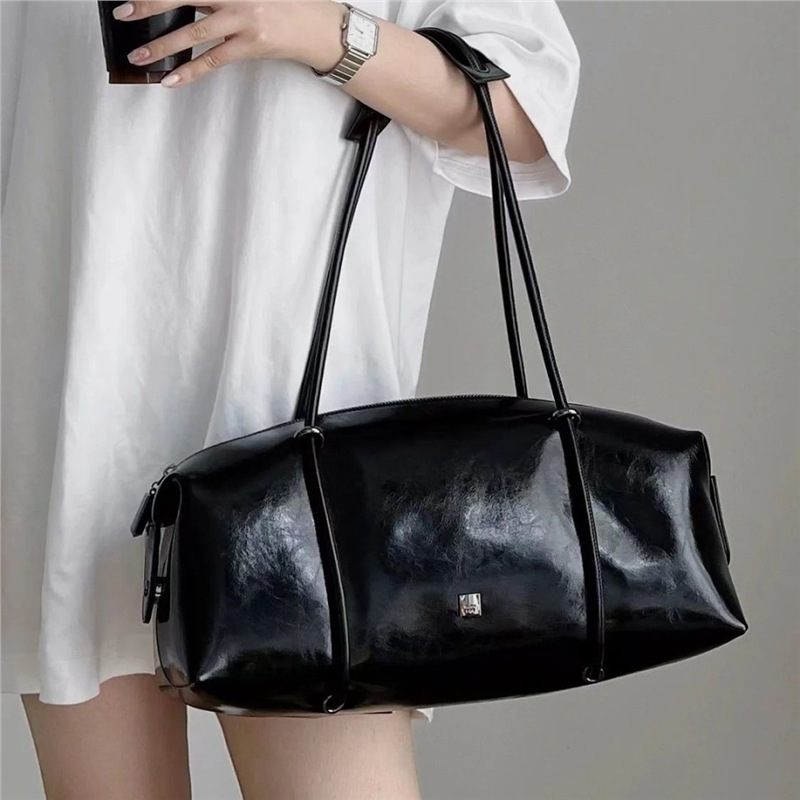 대용량 보스턴 베개 가방 2025 새로운 뜨거운 소녀 오토바이 가방 여성을위한 고급 질감 어깨 여행 핸드백스토어 가기