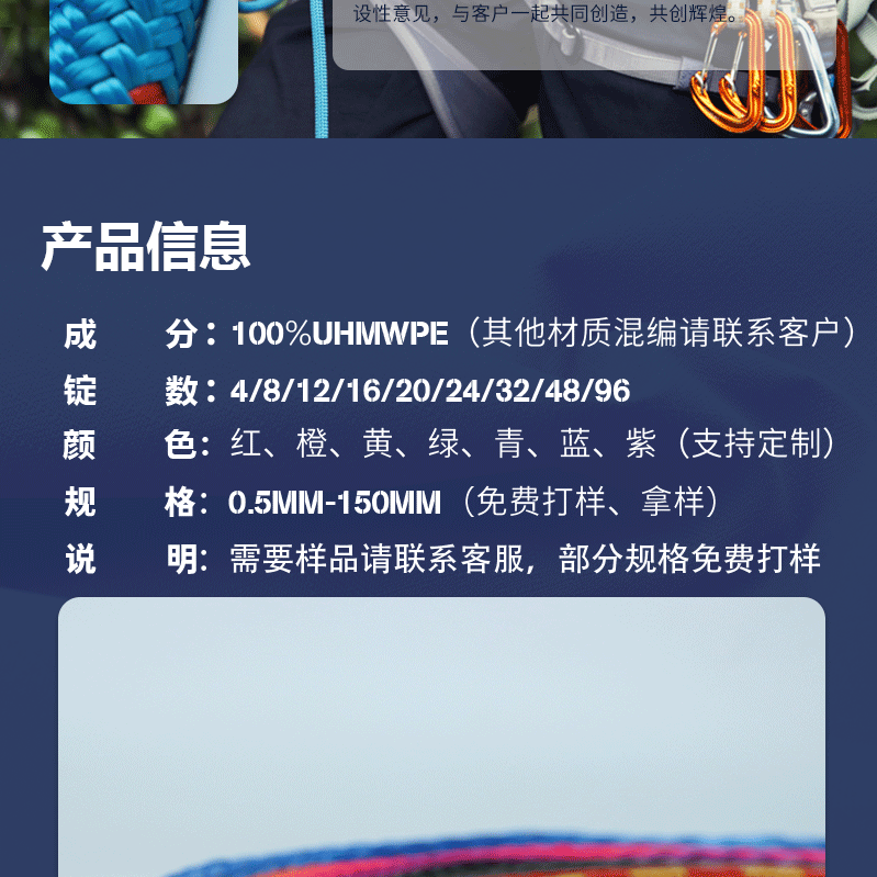 공장 직접 판매 반사 초고분자량 폴리에틸렌 안전 경고 땋은 로프 야외 안전 PE 반사 로프