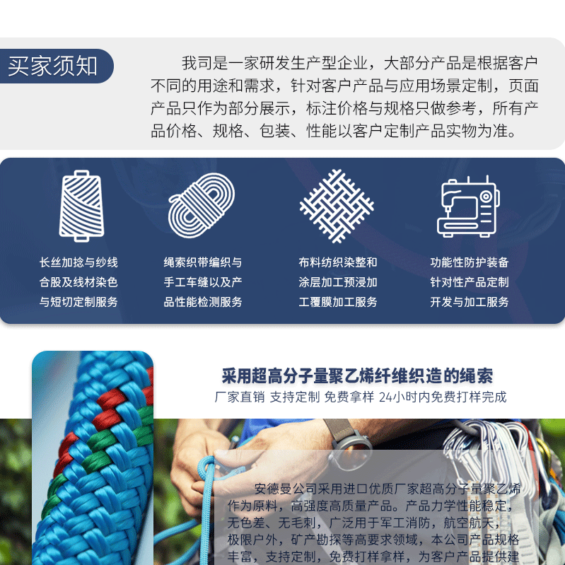 공장 직접 판매 반사 초고분자량 폴리에틸렌 안전 경고 땋은 로프 야외 안전 PE 반사 로프스토어 가기