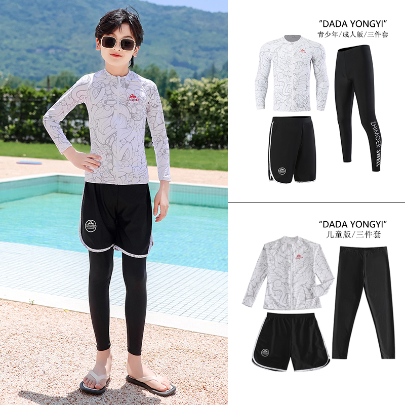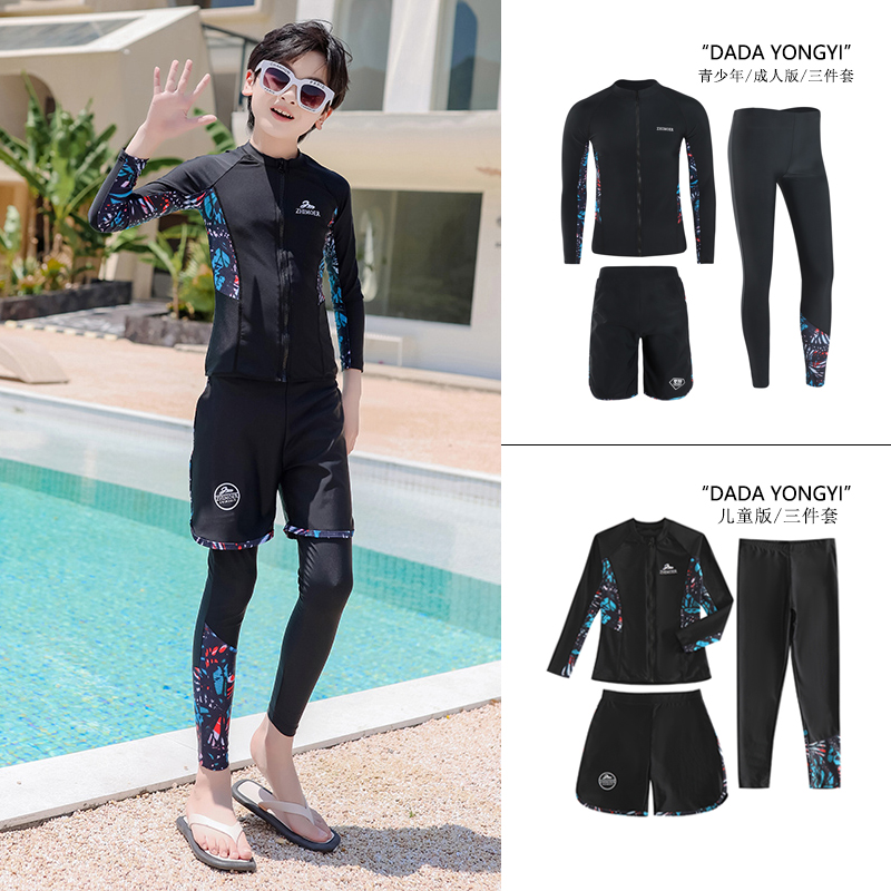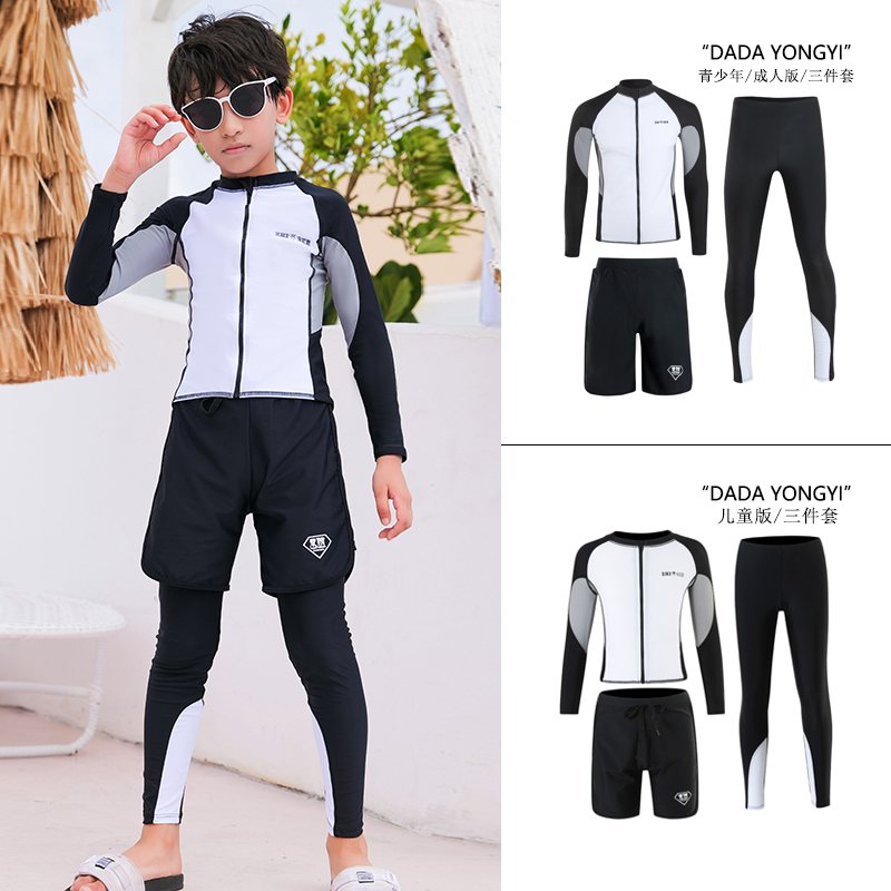 자외선 차단 아동 수영복 소년 소형, 중형 및 대형 아동용 긴팔 바지 청소년 남성용 잠수복 아기 소년 수영복