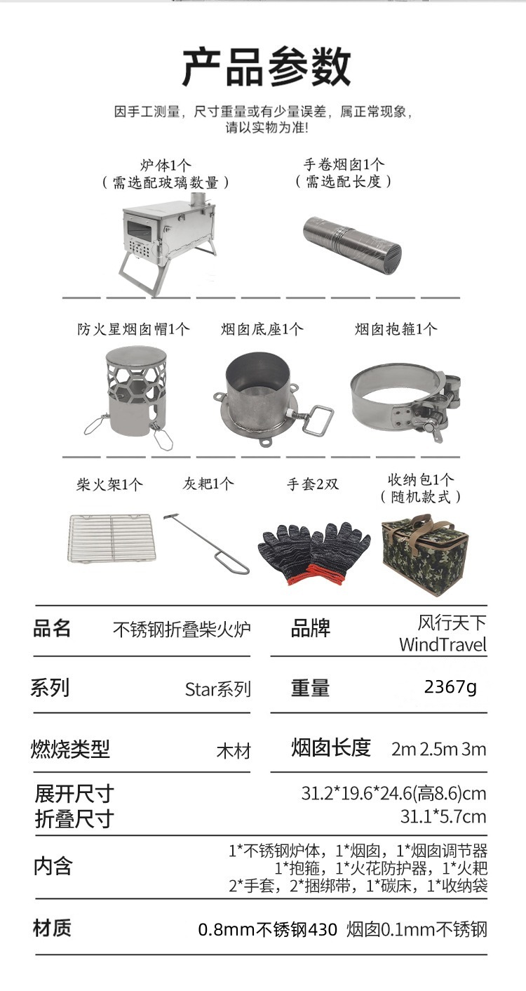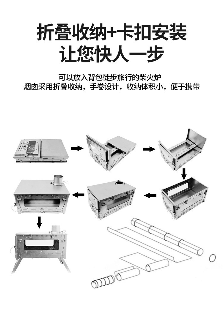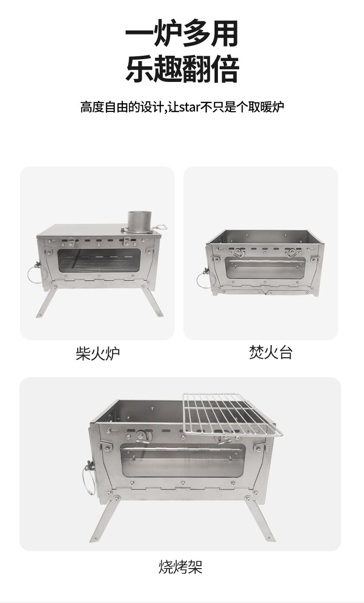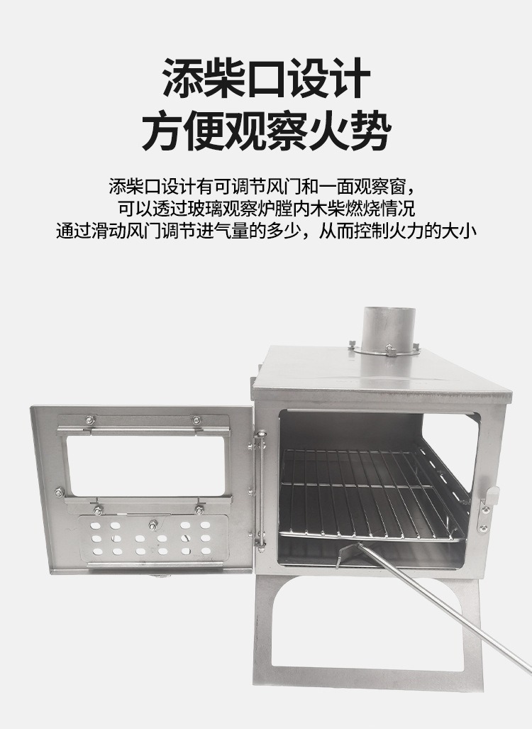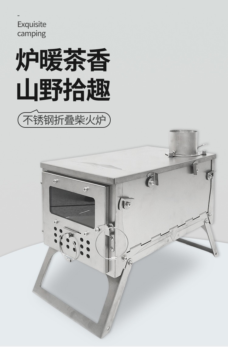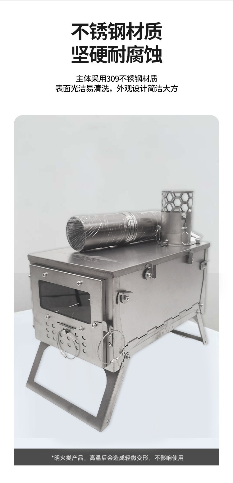 WT-star 스테인레스 스틸 단일 유리 접이식 휴대용 장작 난로 야외 텐트 캠핑 하이킹 배낭 난로