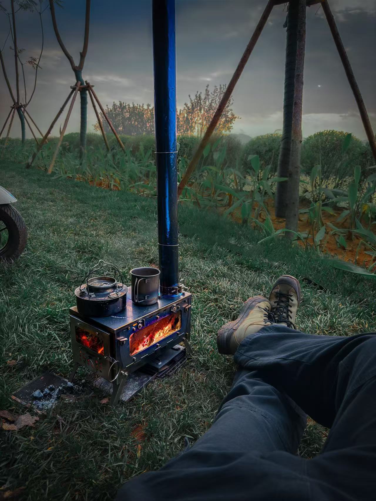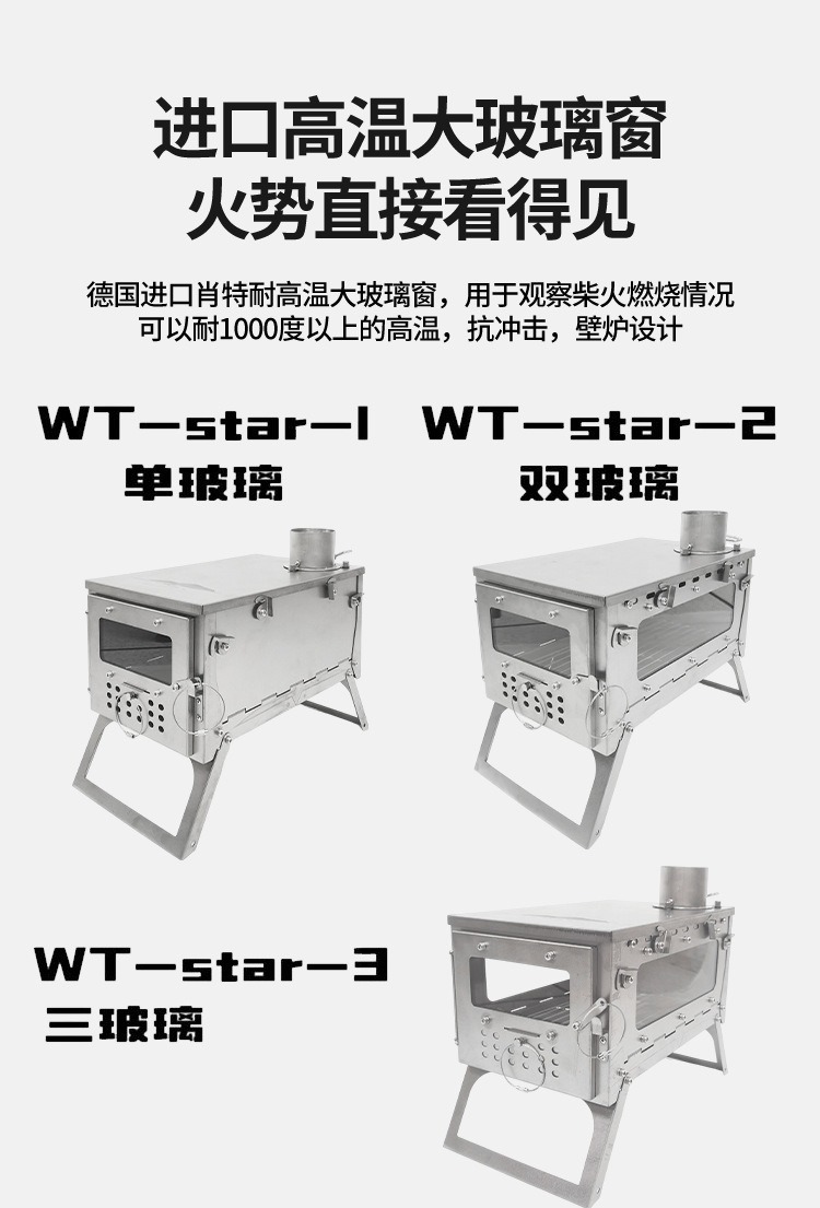WT-star 스테인레스 스틸 단일 유리 접이식 휴대용 장작 난로 야외 텐트 캠핑 하이킹 배낭 난로스토어 가기