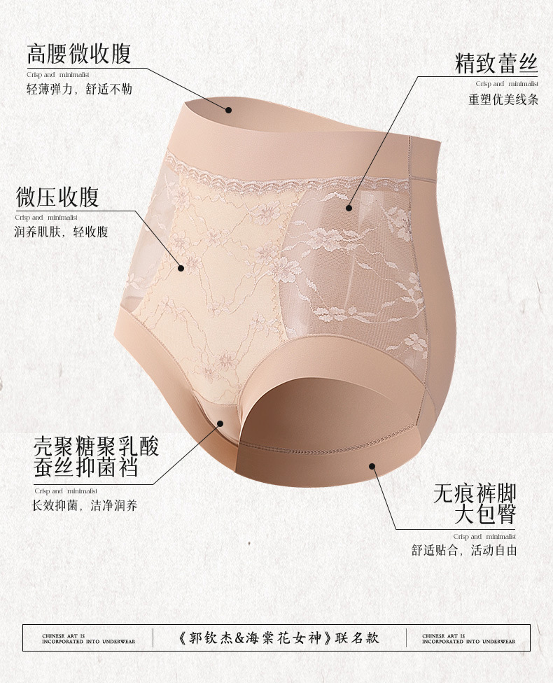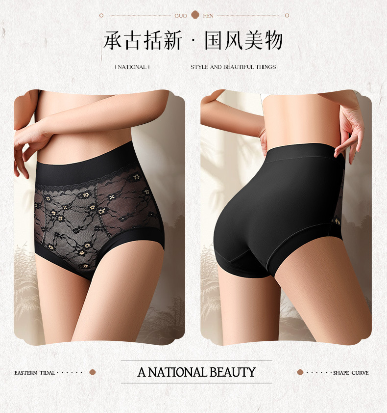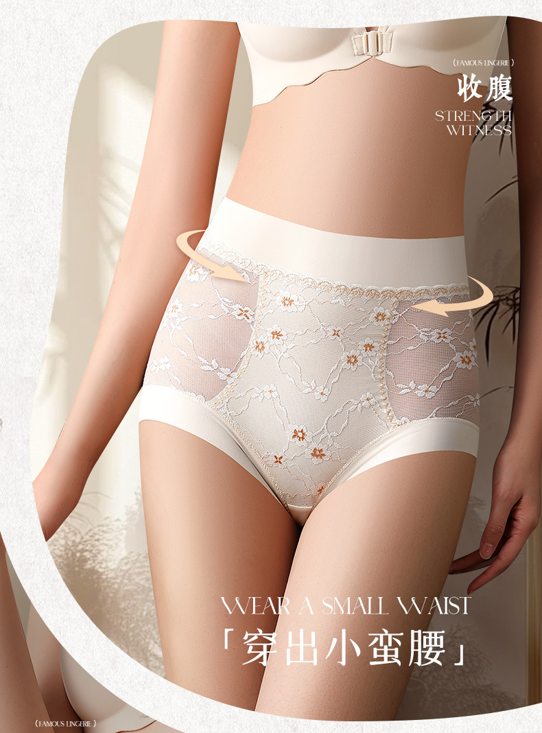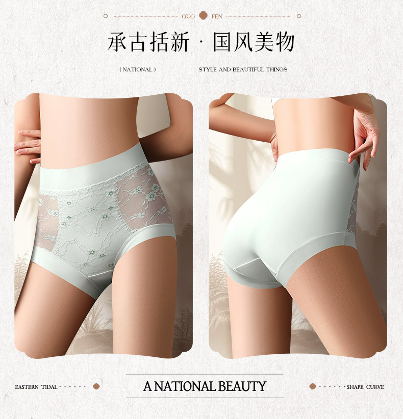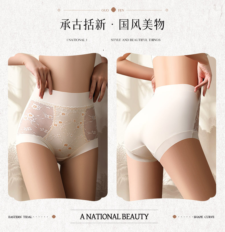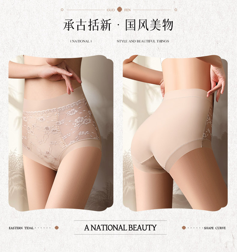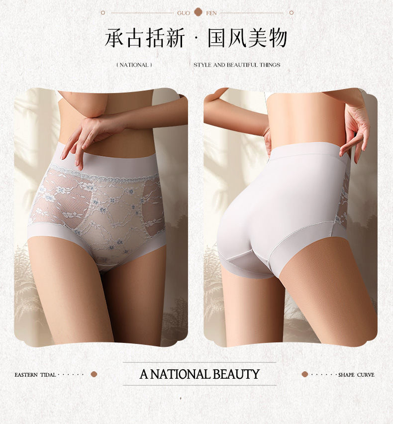높은 허리 섹시한 레이스 복부 엉덩이 리프팅 팬티 여성용 아이스 실크 Traceless 전체 10A 박테리아 플러스 사이즈 삼각형 반바지스토어 가기