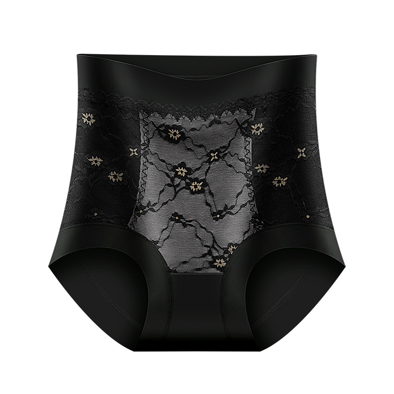 높은 허리 섹시한 레이스 복부 엉덩이 리프팅 팬티 여성용 아이스 실크 Traceless 전체 10A 박테리아 플러스 사이즈 삼각형 반바지