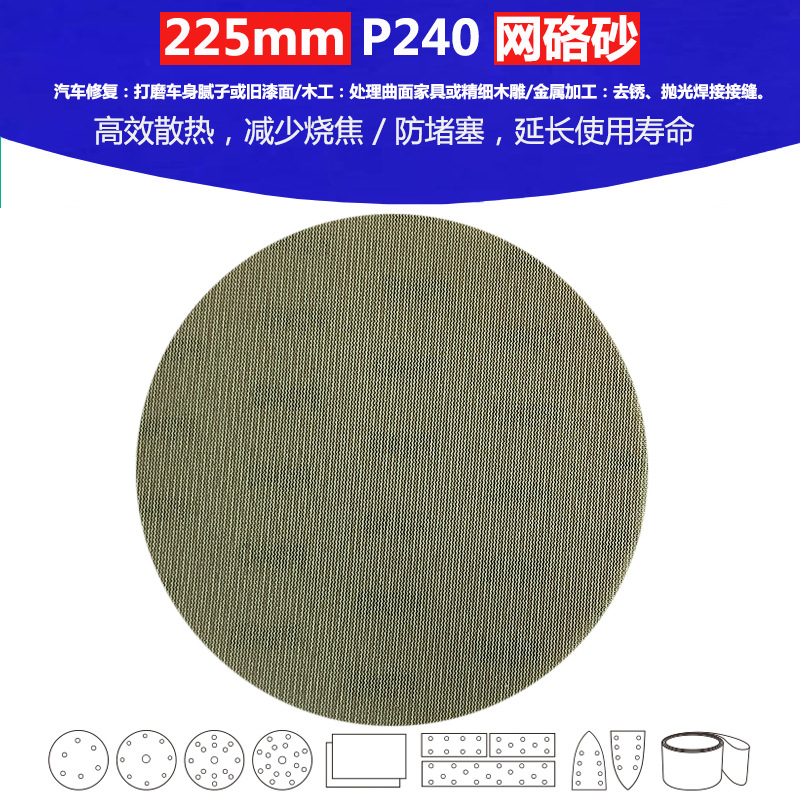 9inch (225mm) P240 고품질 메쉬 샌딩 페이스트 파우더 제조 연마 및 연삭 플로킹 사포스토어 가기