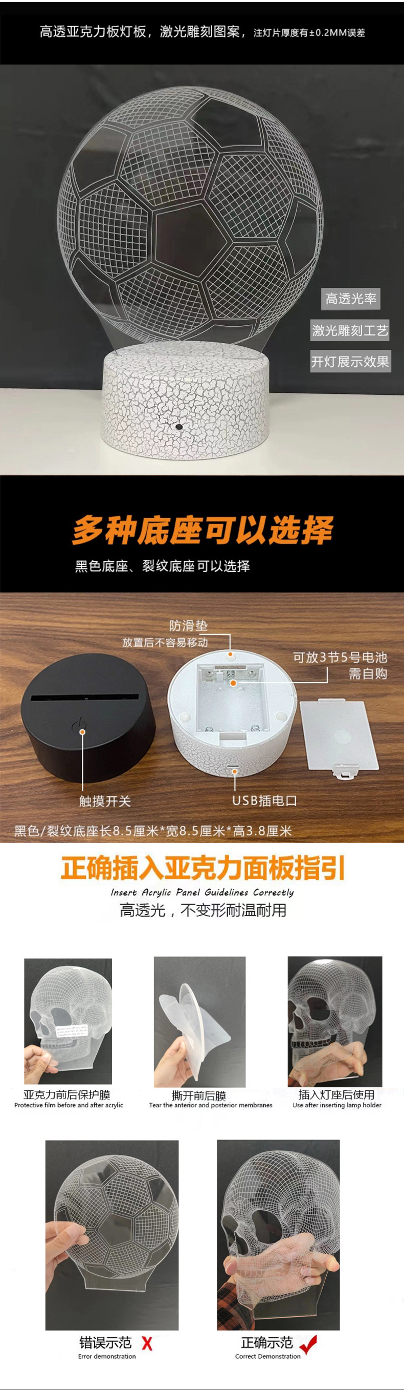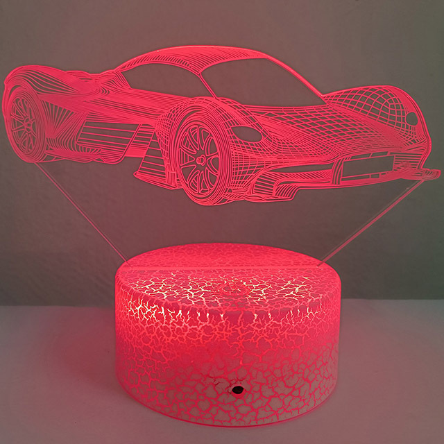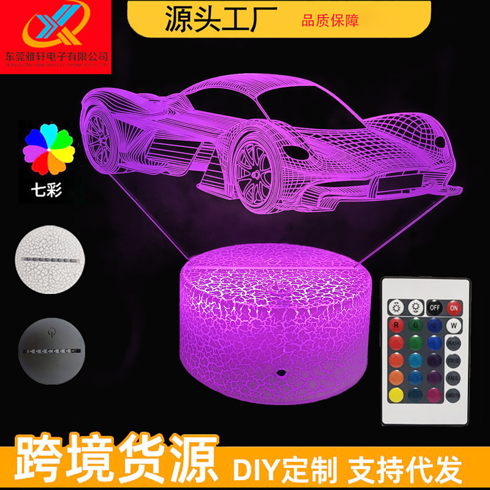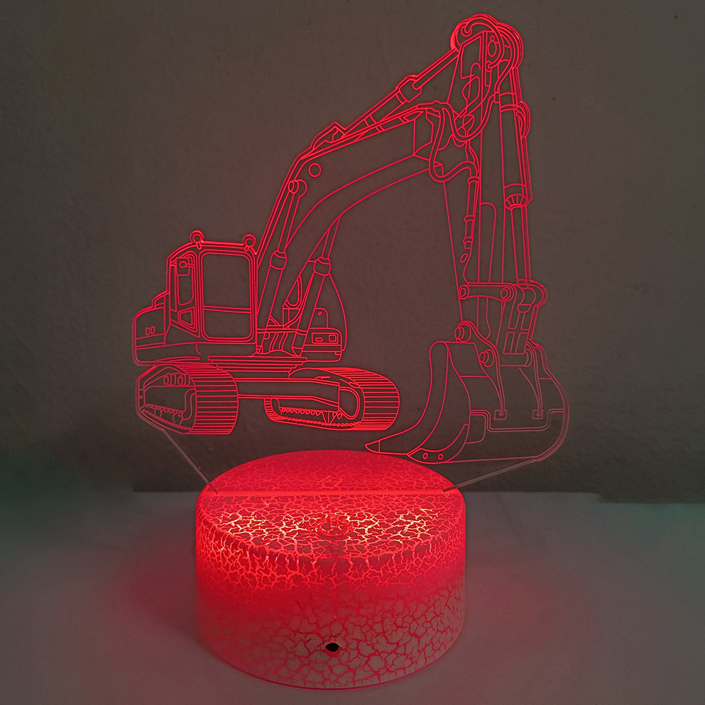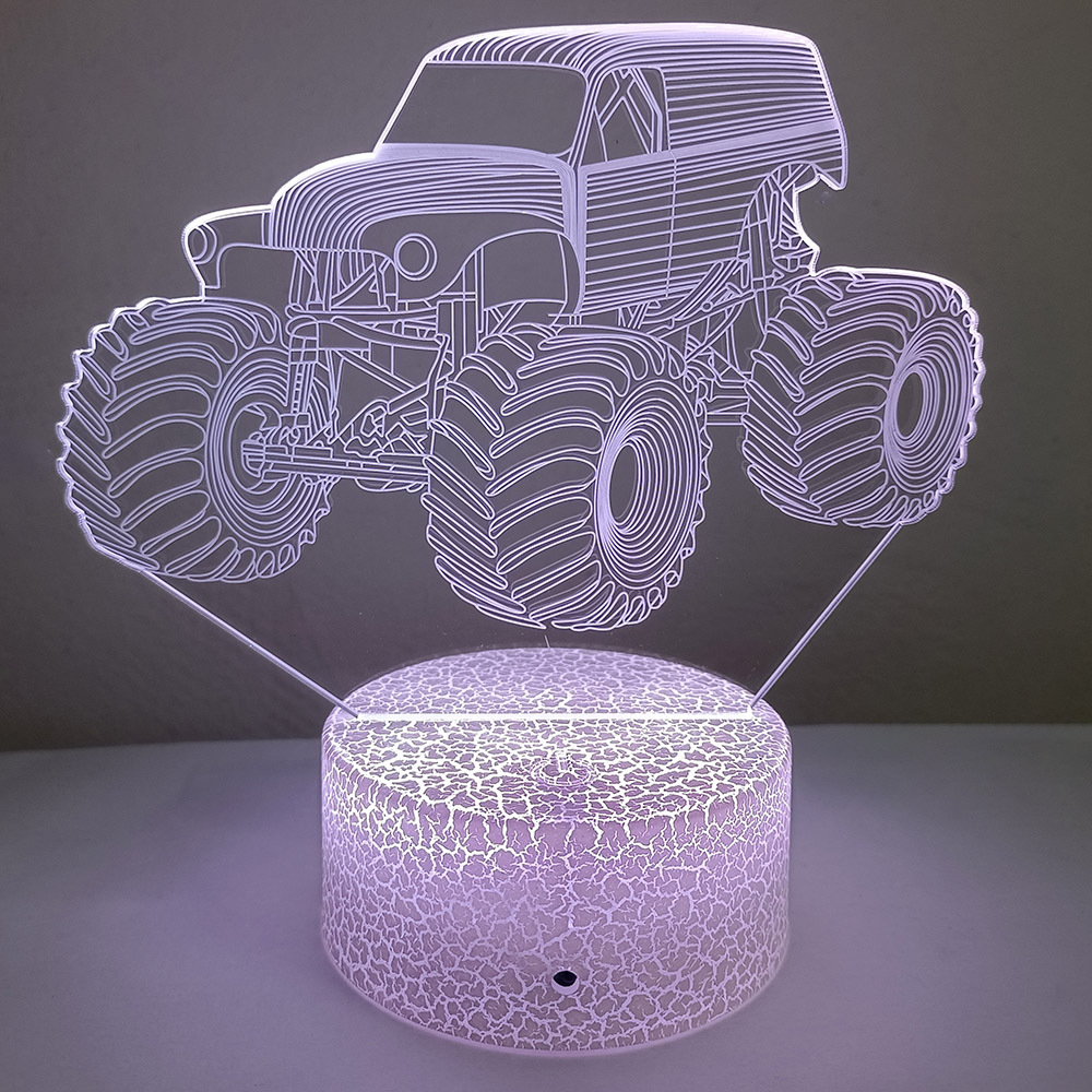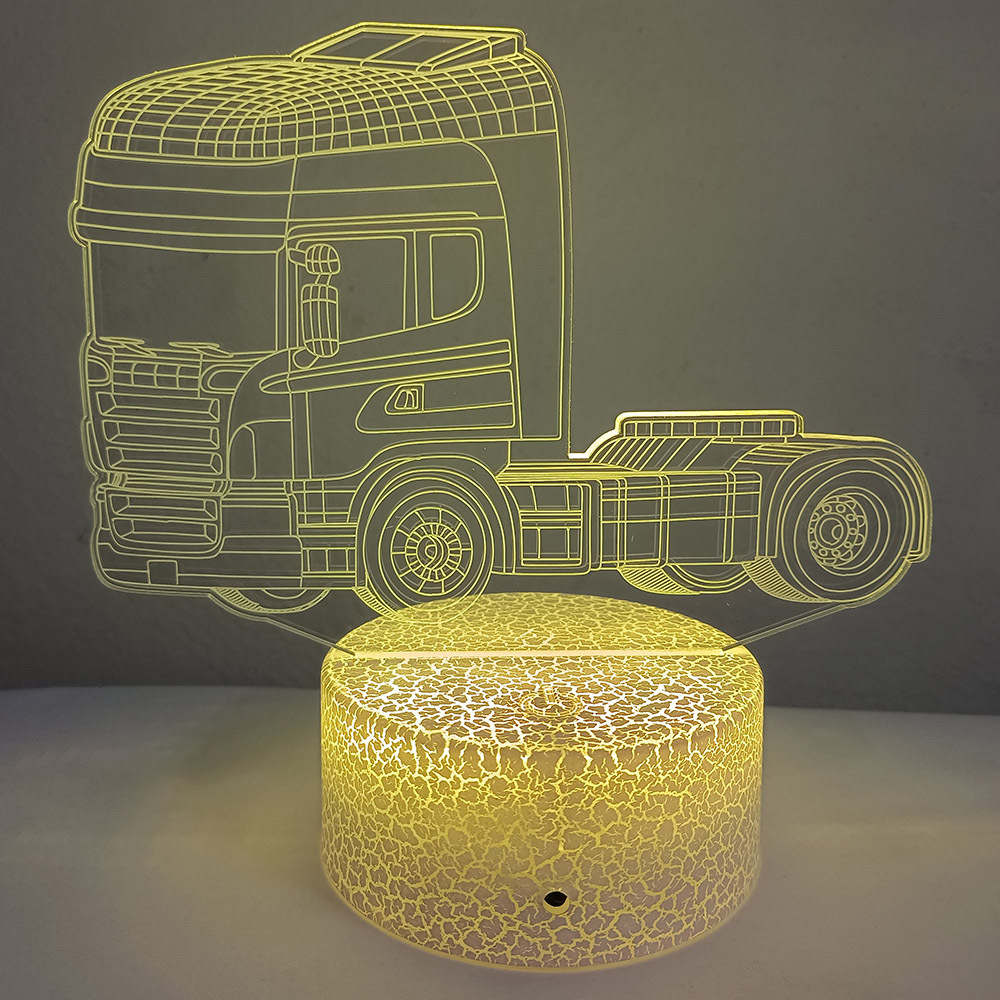 工厂直营 儿童房炫酷工程车夜灯 亚克力3D赛车造型触摸调色装饰灯