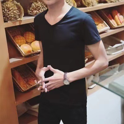 반팔 티셔츠 남성복 2025 신작 여름 한국 스타일 라운드 넥 탑 슬림 컬러 남성용 하의 셔츠 반팔 트렌디스토어 가기