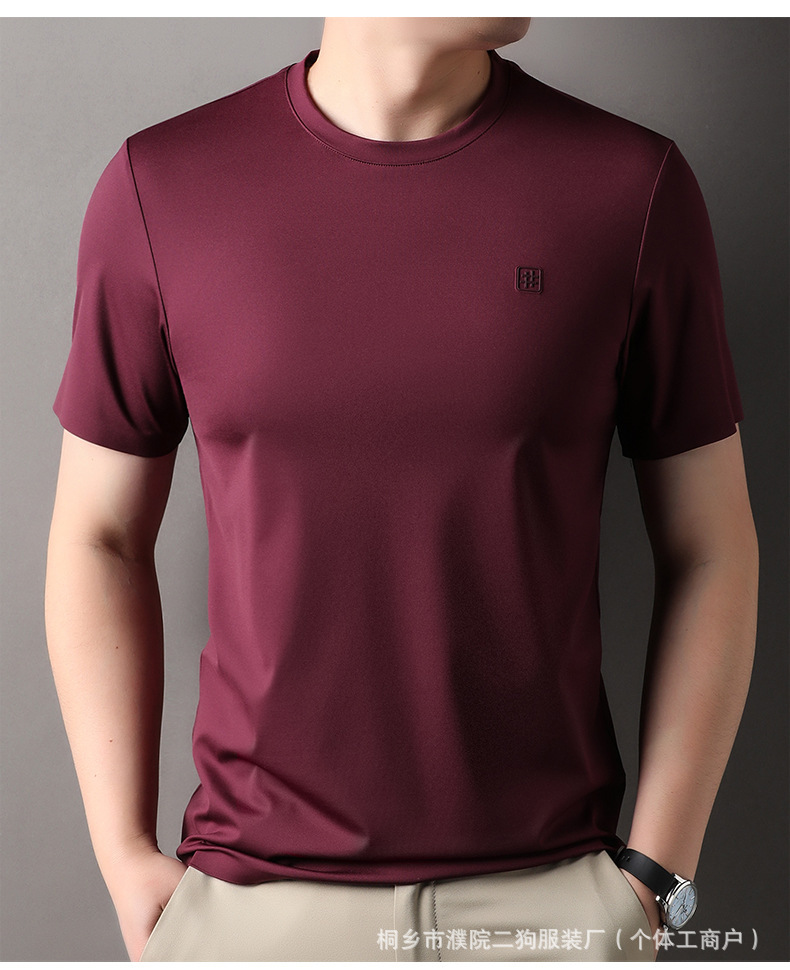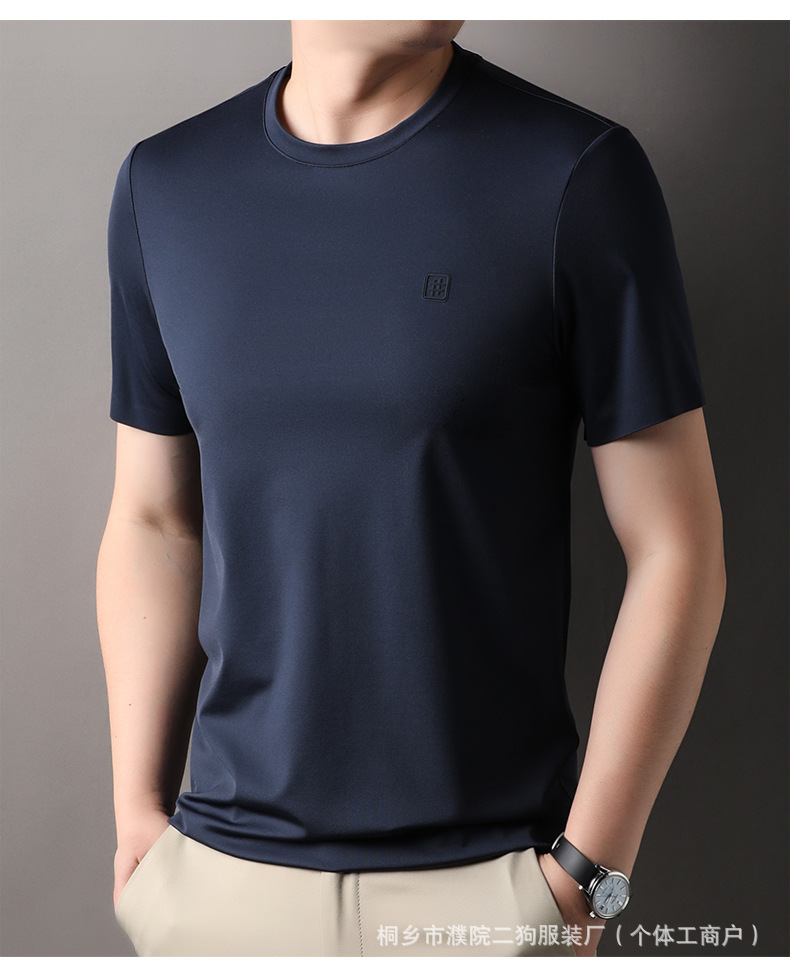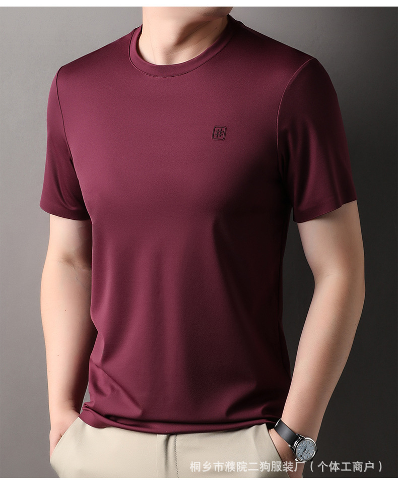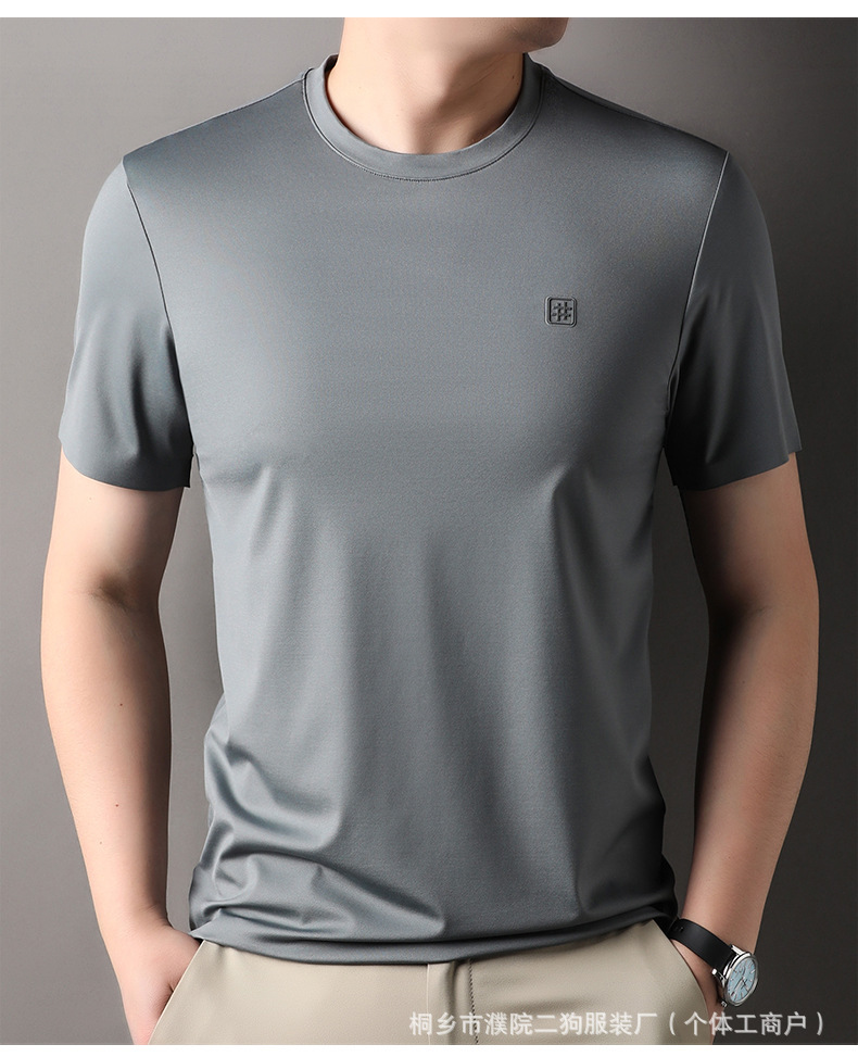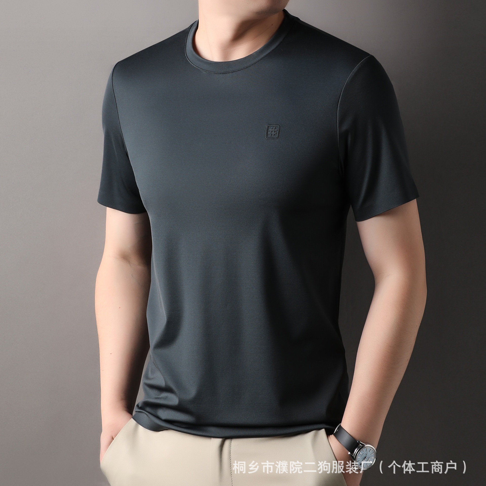 2025 여름 새로운 뽕나무 실크 남성 티셔츠 중년 둥근 목 자수 캐주얼 얇은 반팔 남성 도매