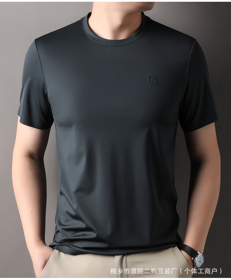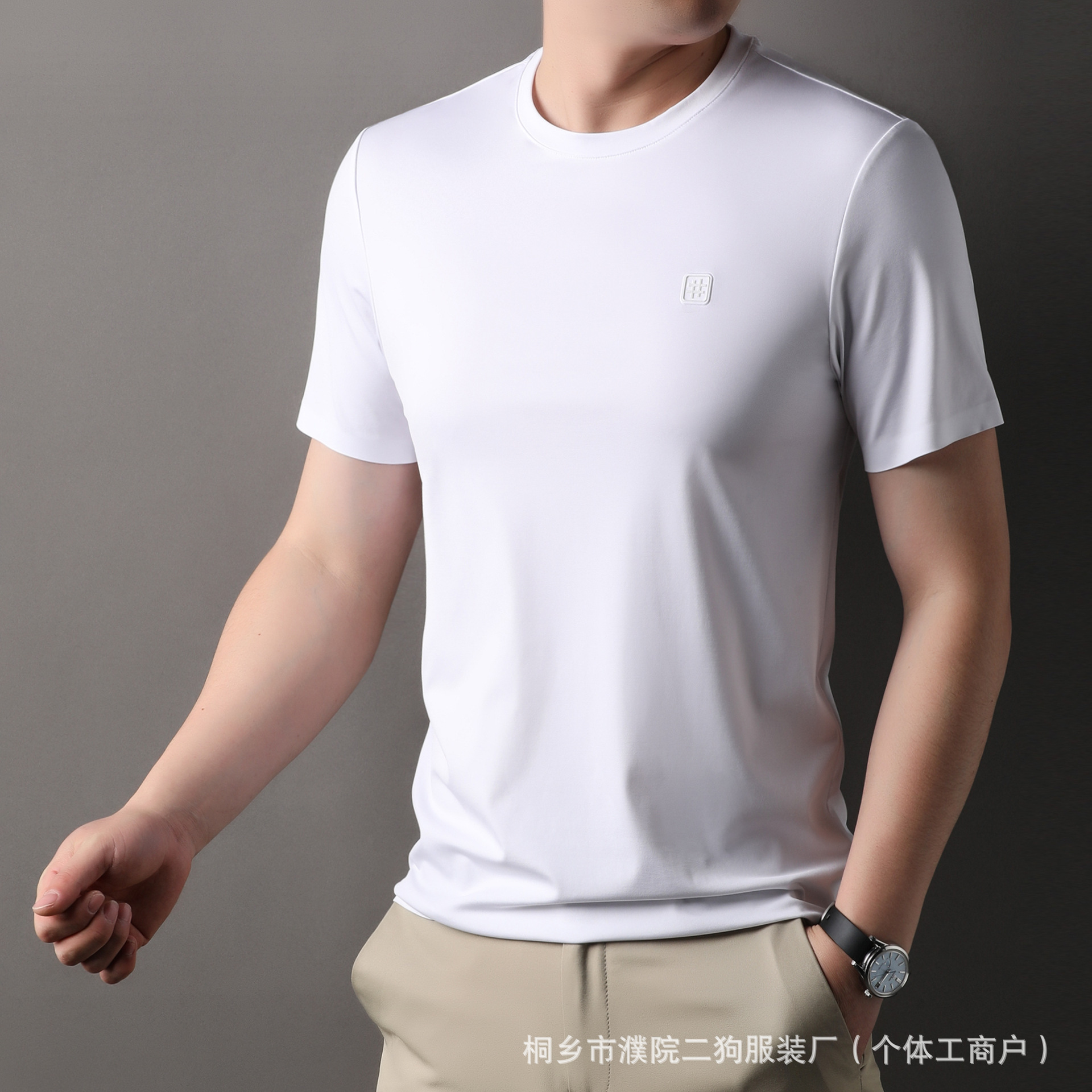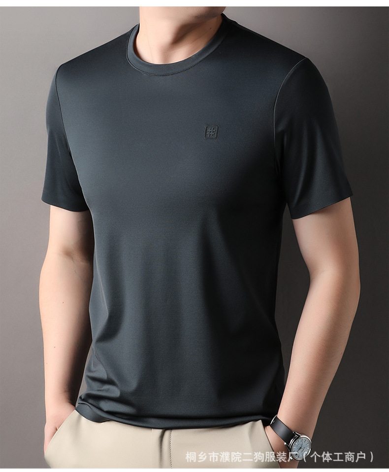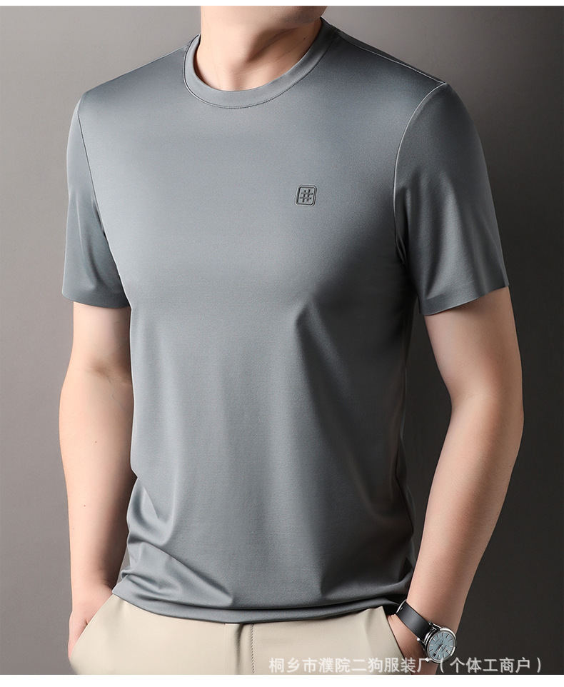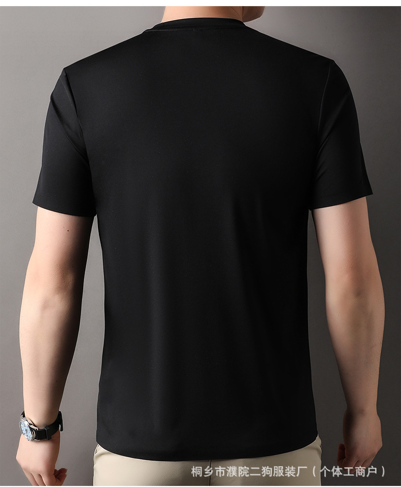 2025 여름 새로운 뽕나무 실크 남성 티셔츠 중년 둥근 목 자수 캐주얼 얇은 반팔 남성 도매