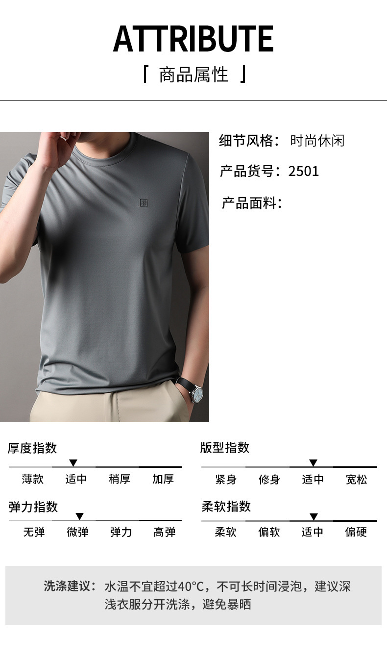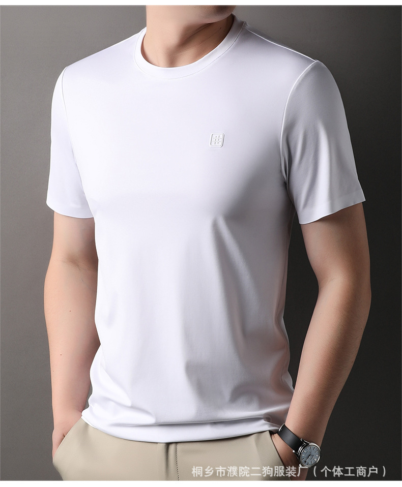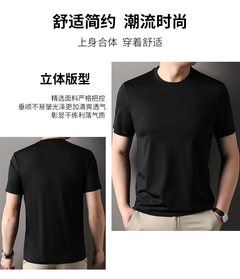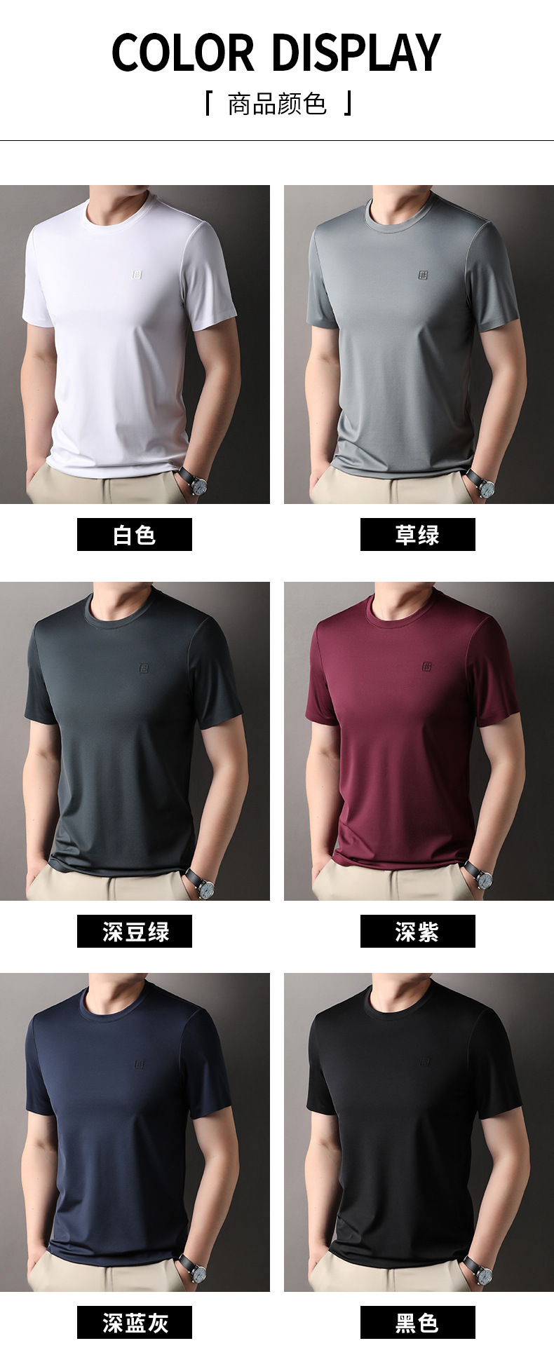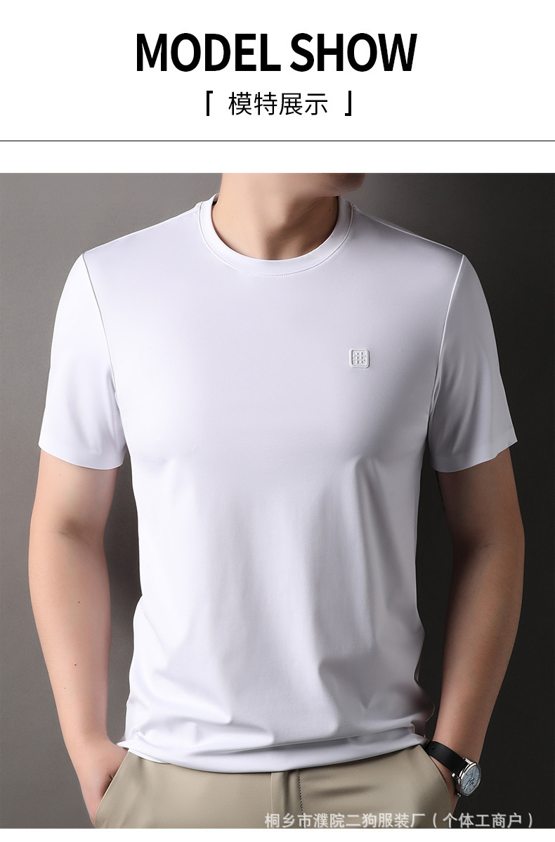 2025 여름 새로운 뽕나무 실크 남성 티셔츠 중년 둥근 목 자수 캐주얼 얇은 반팔 남성 도매