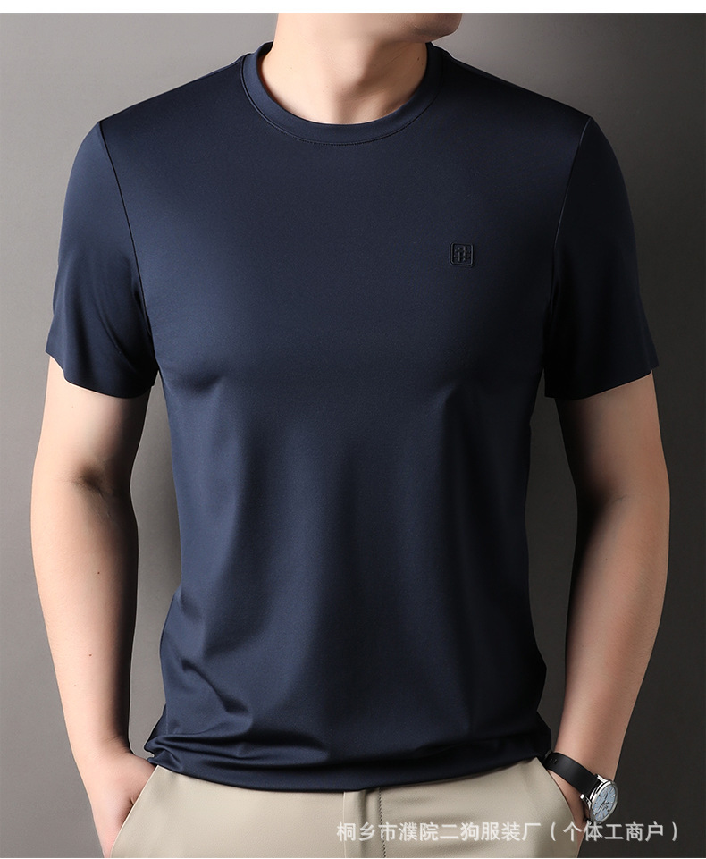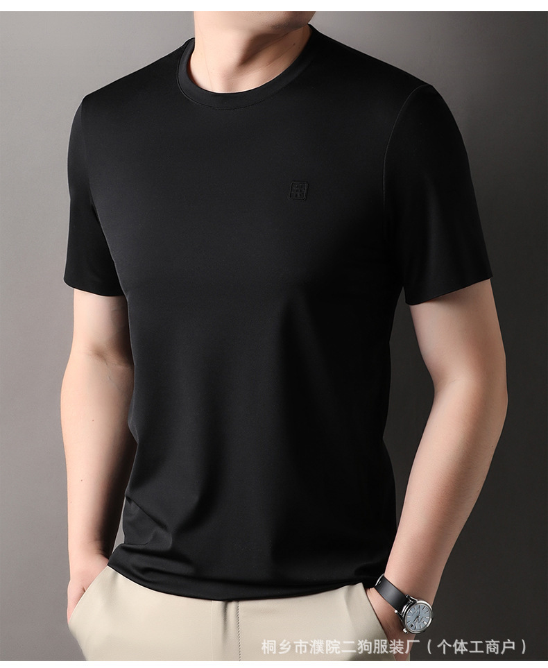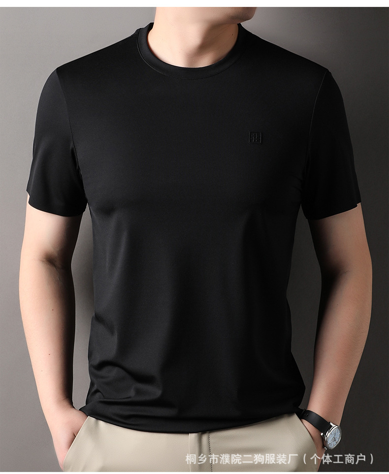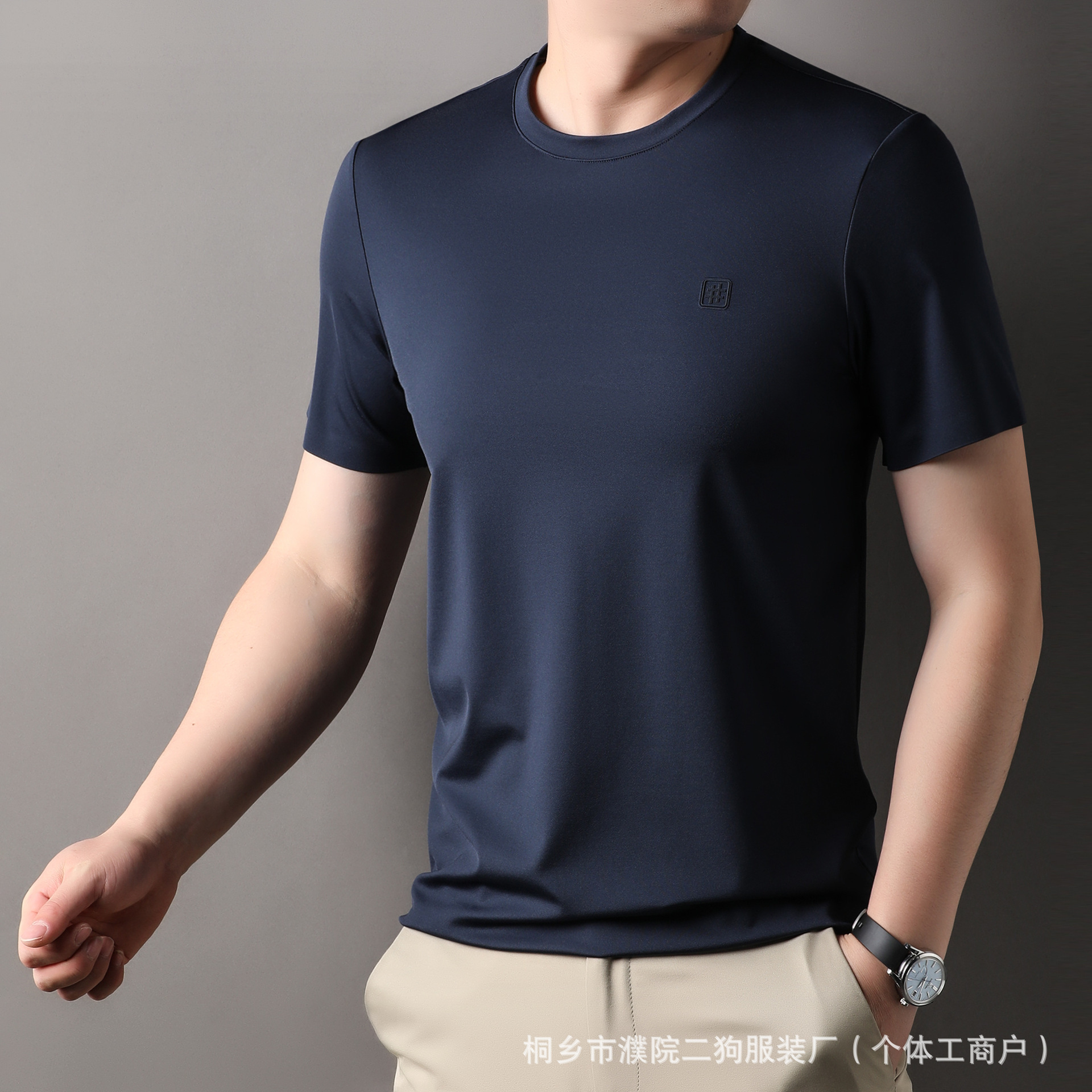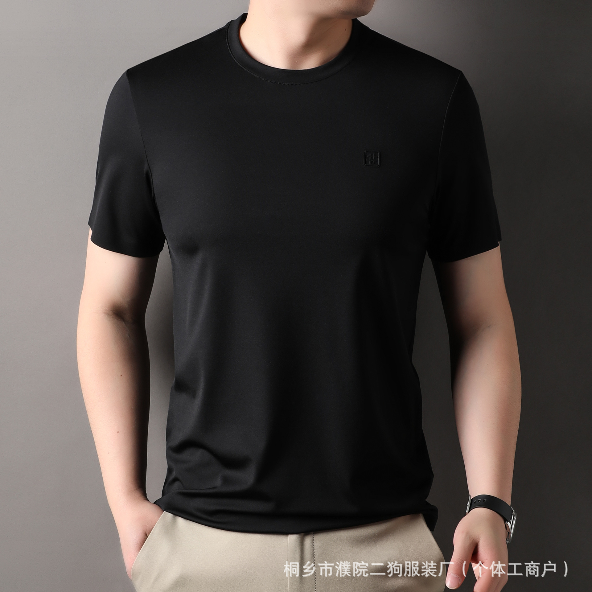 2025 여름 새로운 뽕나무 실크 남성 티셔츠 중년 둥근 목 자수 캐주얼 얇은 반팔 남성 도매스토어 가기