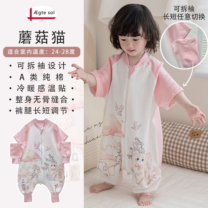아기를위한 아기 AEgtesol 면화 슬리핑 백 봄 및 여름 분리 가능한 소매 킥 방지 슬리브 뼈없는 재봉스토어 가기