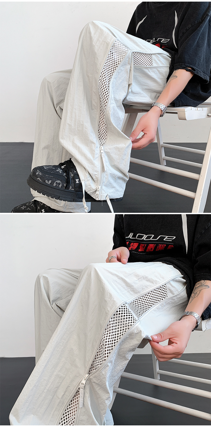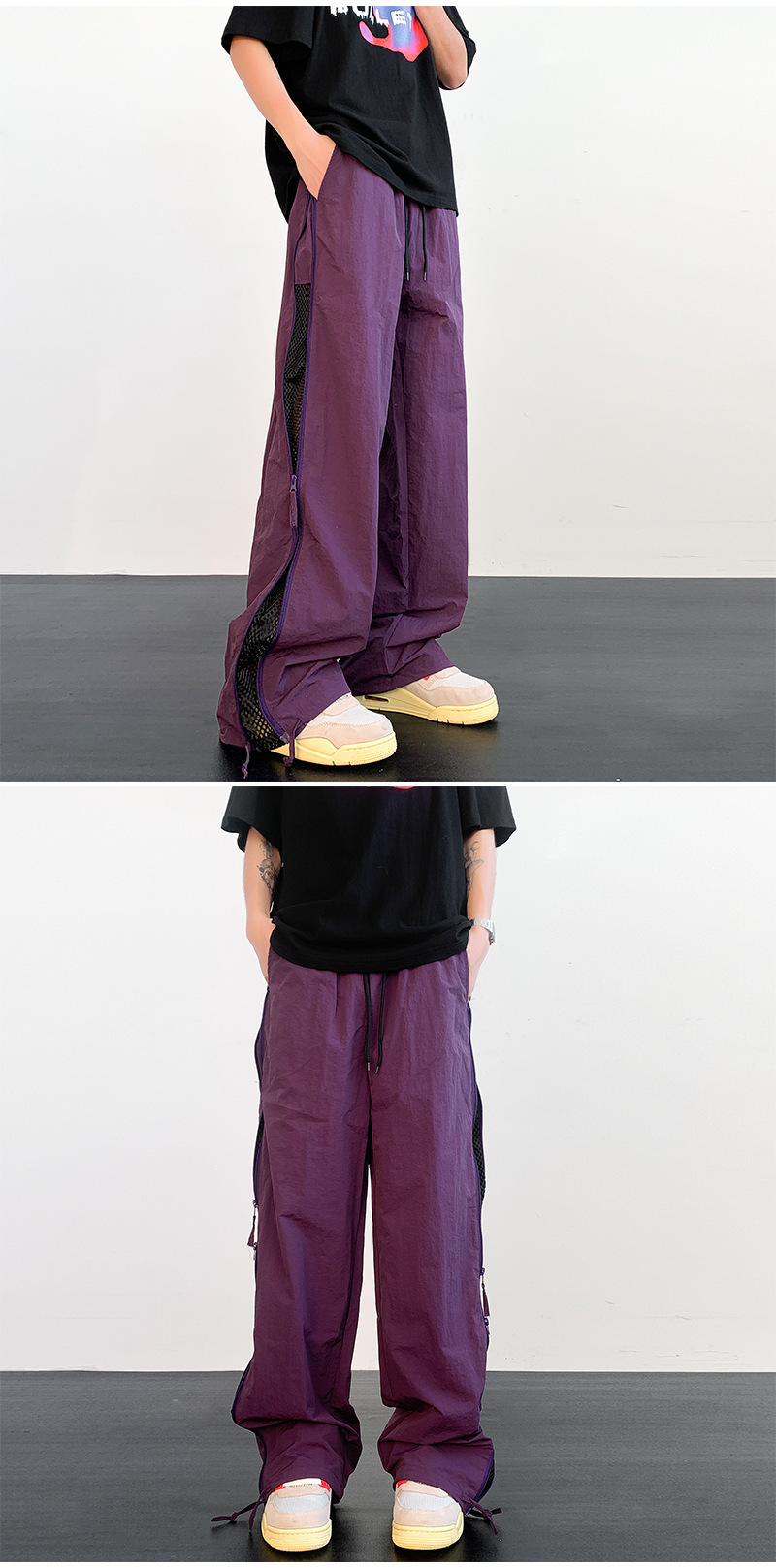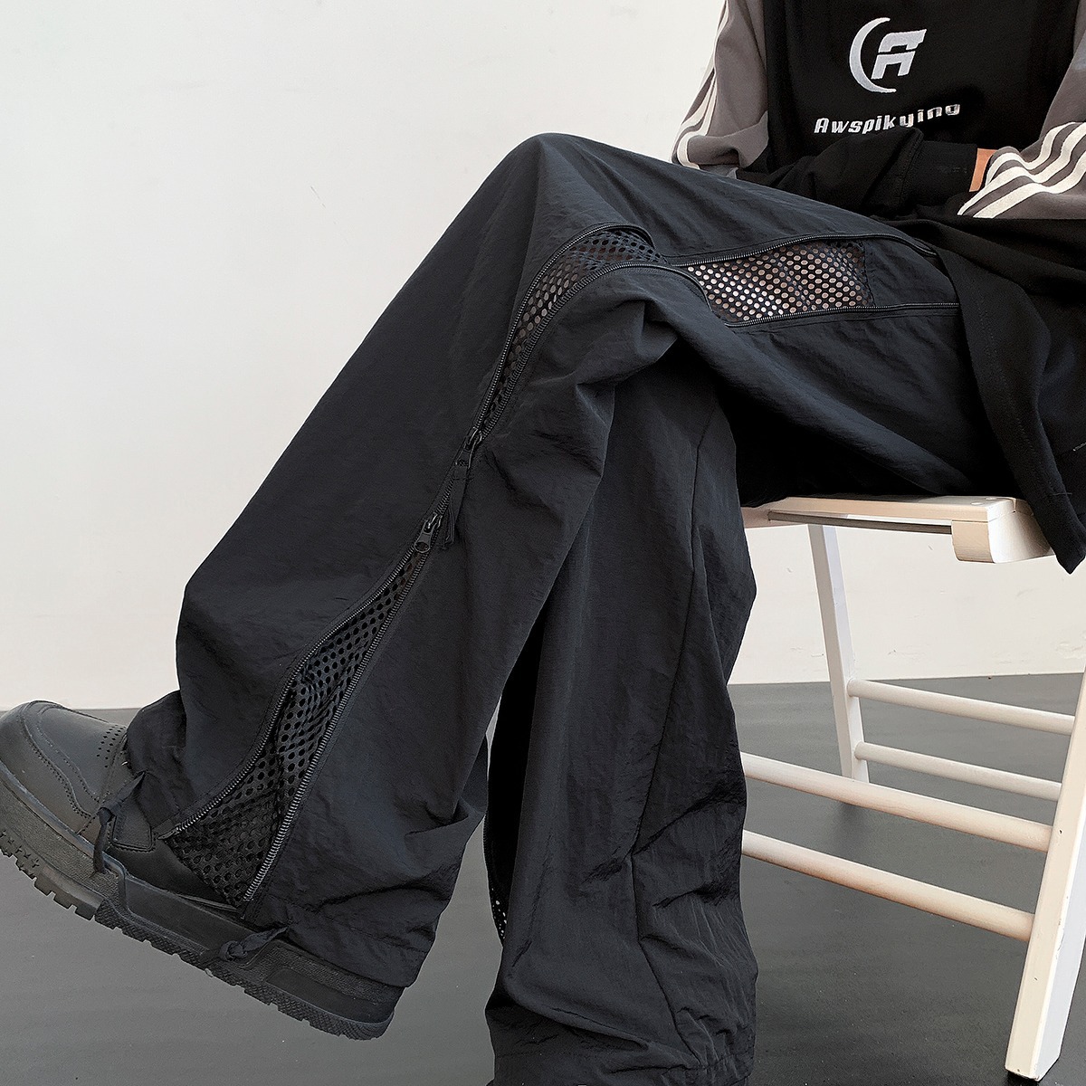 가을 트렌디 아메리칸 아웃도어 등산 바지 남성용 메쉬 통기성 속건 낙하산 바지 루즈 스트레이트 캐주얼 바지스토어 가기