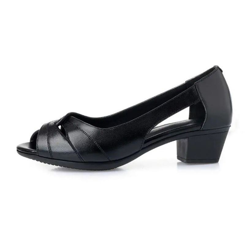 2025 새로운 여름 대외 무역 피쉬 입 샌들 여성 가죽 두꺼운 굽 중간 굽 캐주얼 다목적 오픈 발가락 슬립 온 샌들스토어 가기
