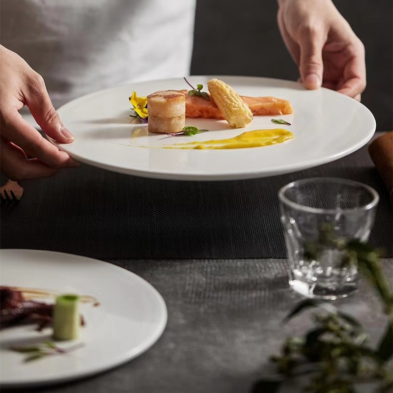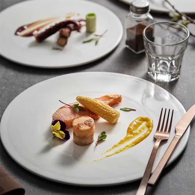 세라믹 원형 플랫 디저트 접시, 무스 디스플레이 접시, 스시 접시, 케이크 트레이, 스테이크 접시, 베이킹 트레이