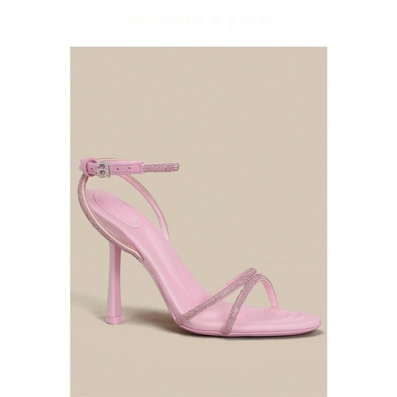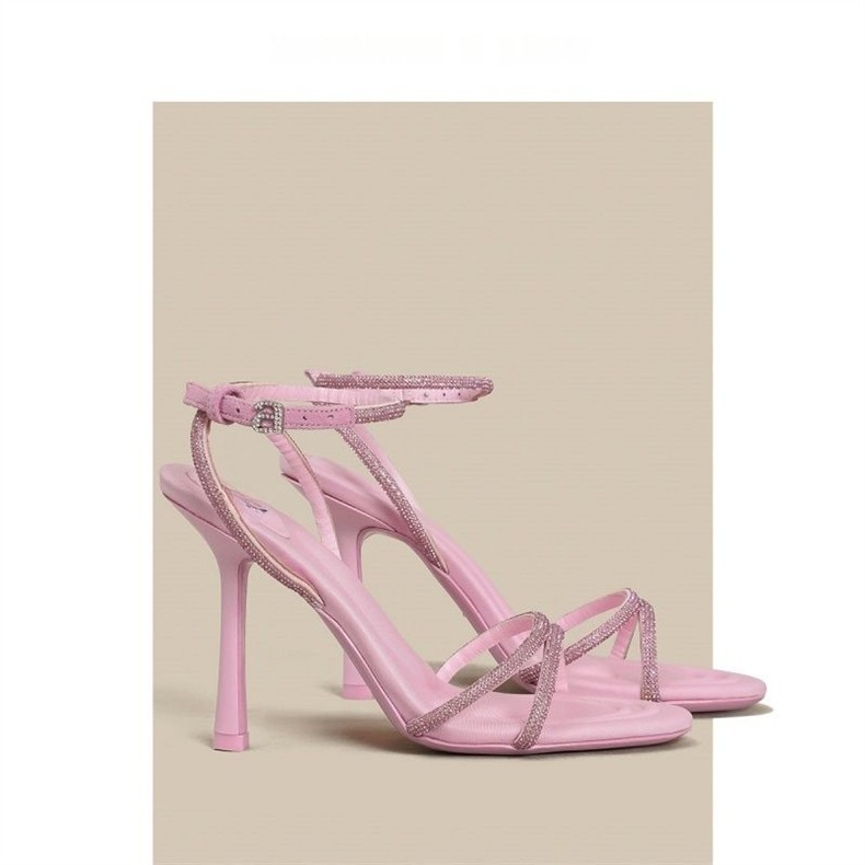 여성용 하이힐 샌들 2026년 신상 스타일리쉬 핑크 스틸레토 힐 여름 오픈토 원스트랩 큐빅 레터링