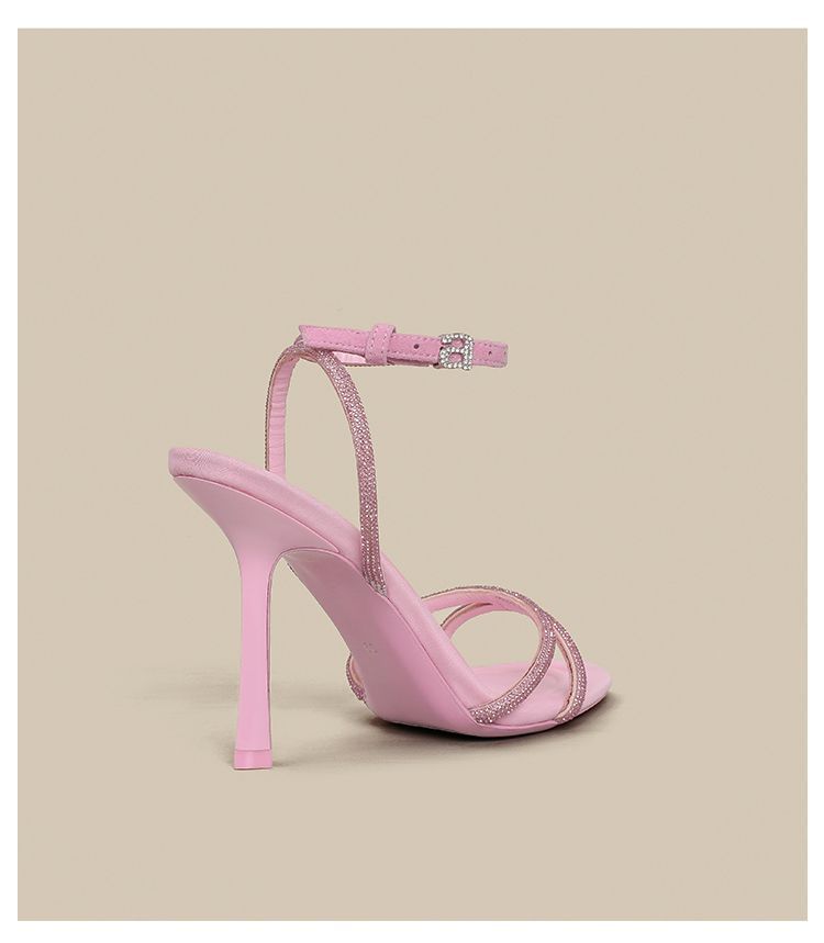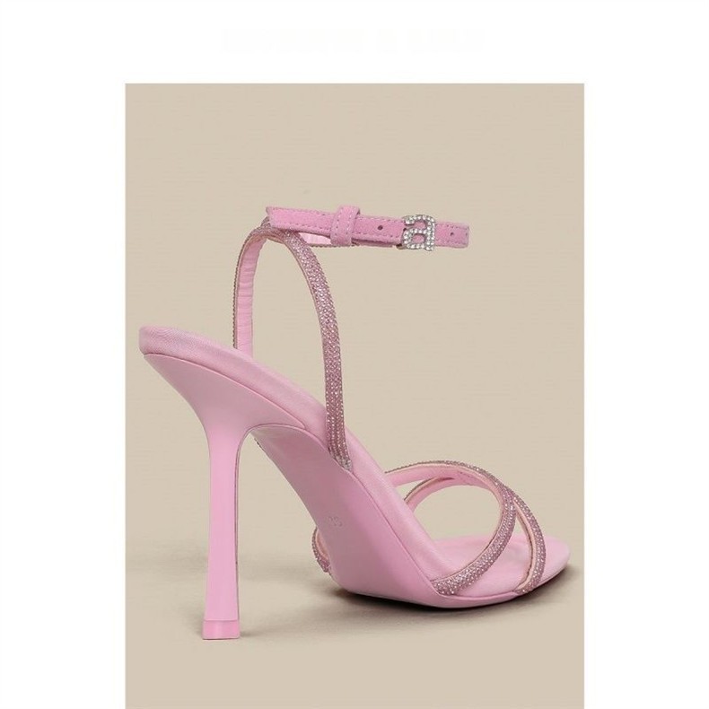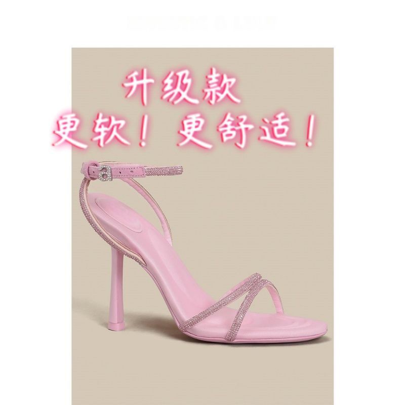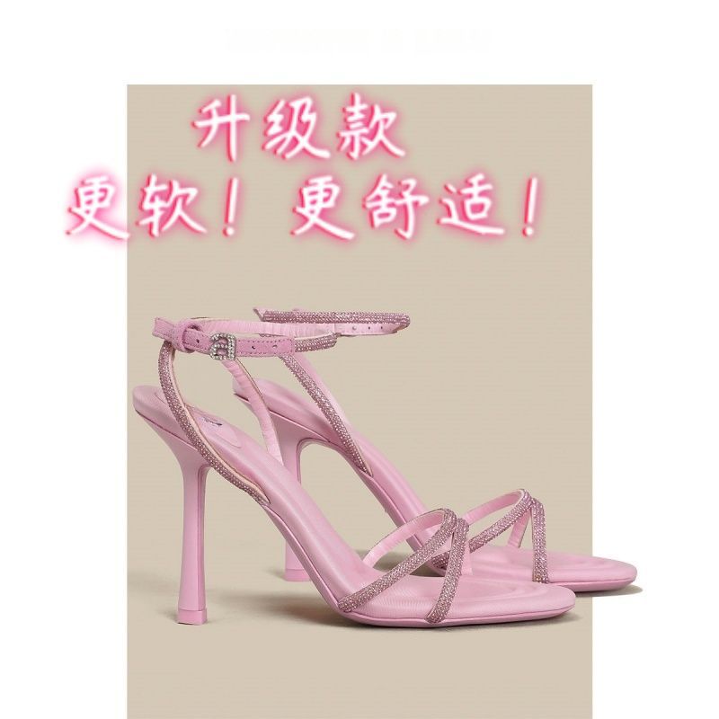 여성용 하이힐 샌들 2026년 신상 스타일리쉬 핑크 스틸레토 힐 여름 오픈토 원스트랩 큐빅 레터링스토어 가기