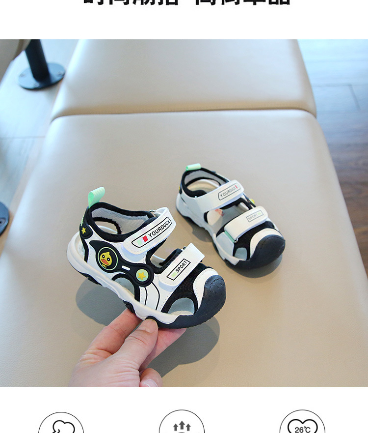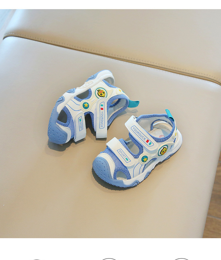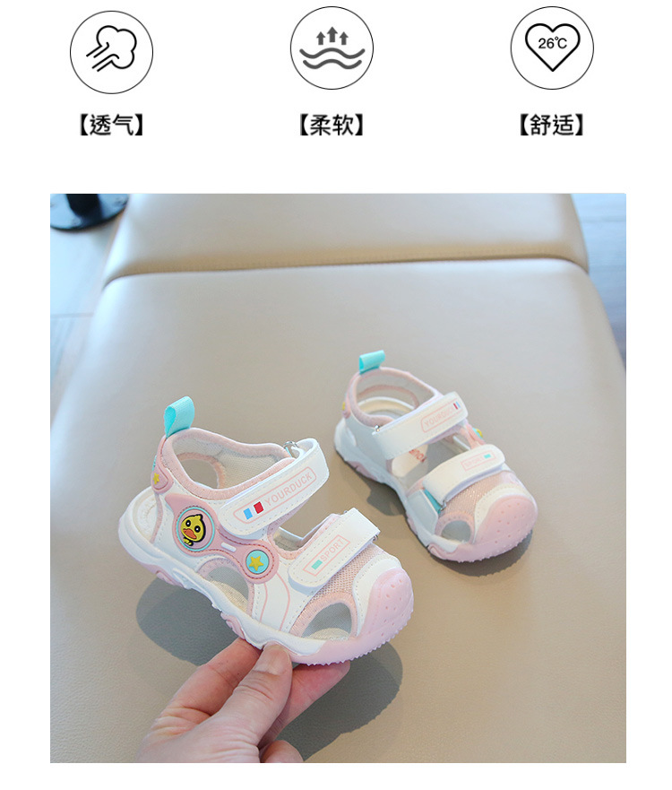 여름철 여아용 스포츠 샌들, 남아용 앞코 보호형, 부드러운 밑창, 미끄럼 방지, 아기 기능성 신발, 통기성 메쉬 소재