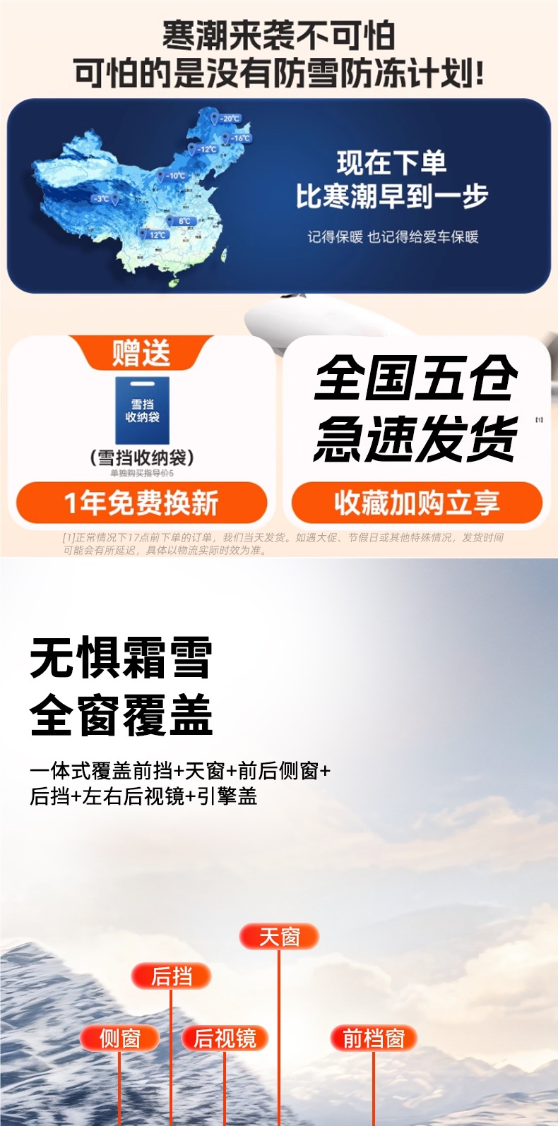 • 풀 커버리지 버전 [Baojun-hatchback/sedan] 전체 창 커버리지丨두꺼운 면丨방풍 및 부동액(수납 가방 포함)