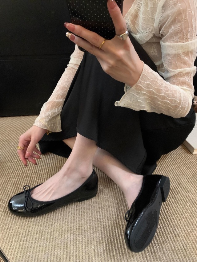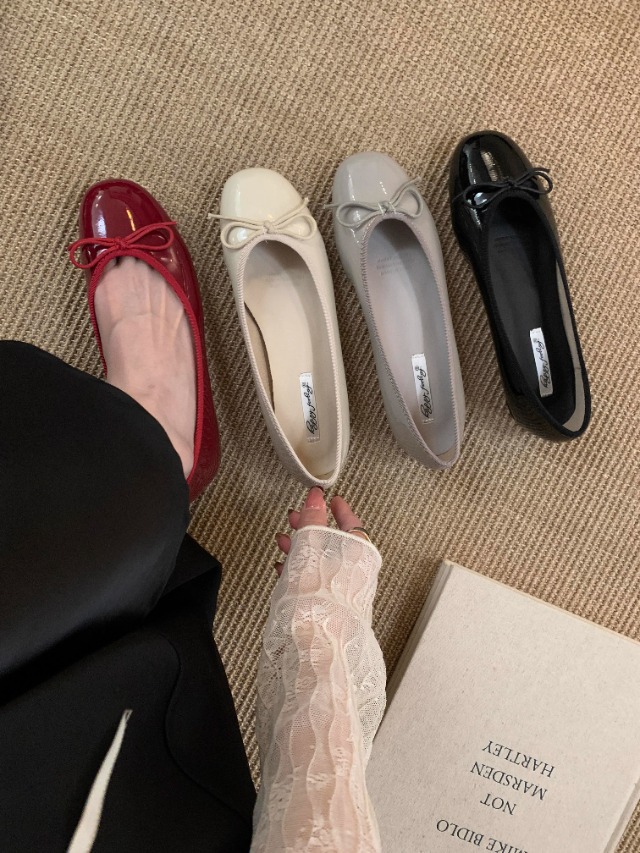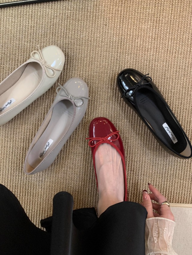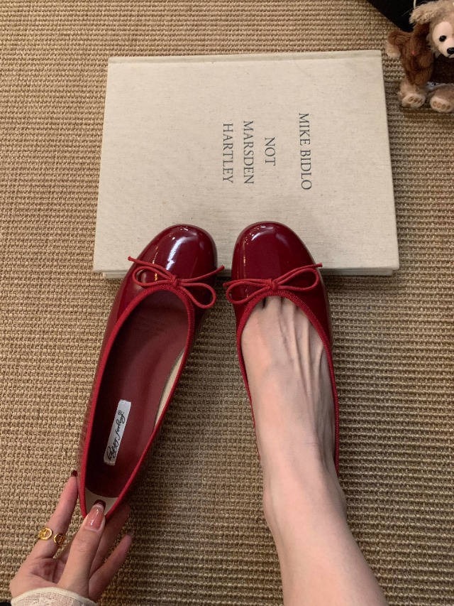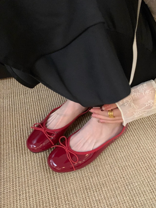 저녁 바람 부드러운 나비 매듭 빨간색 작은 신발 여성 2025 봄 새로운 프랑스어 부드러운 밑창 조수 신발 플랫 할머니 신발스토어 가기