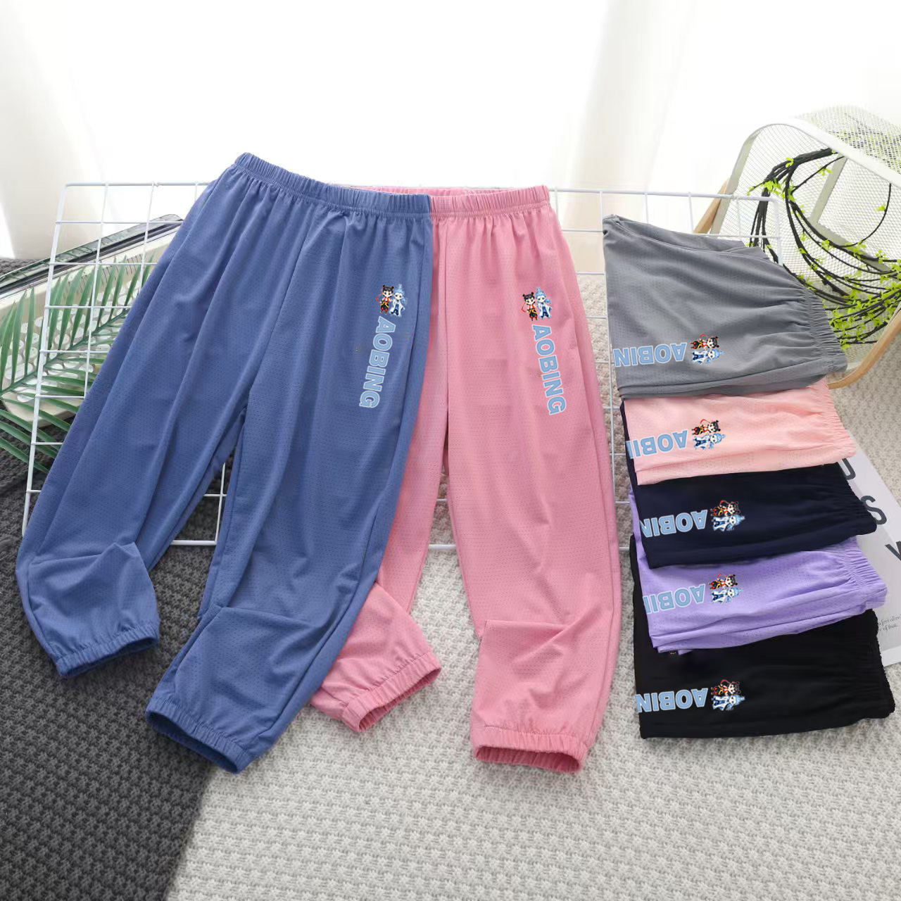 어린이 모기 방지 바지 2025 새로운 빠른 건조 나일론 캐주얼 바지 Ao Bing 여름 시원한 느슨한 넓은 다리 바지
