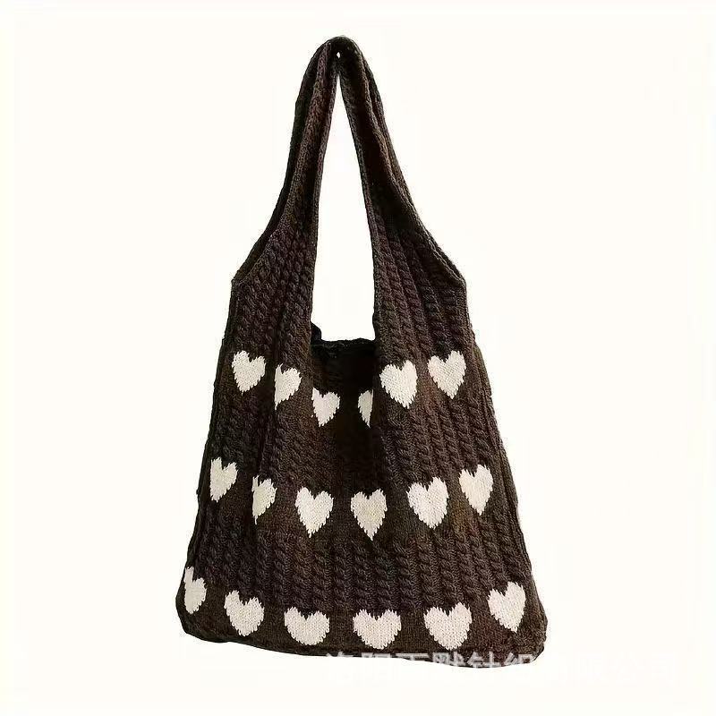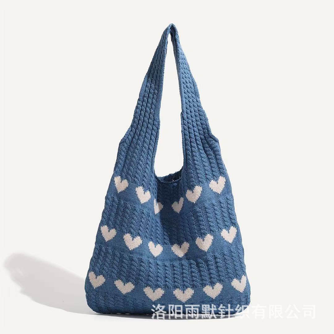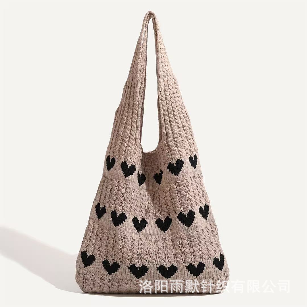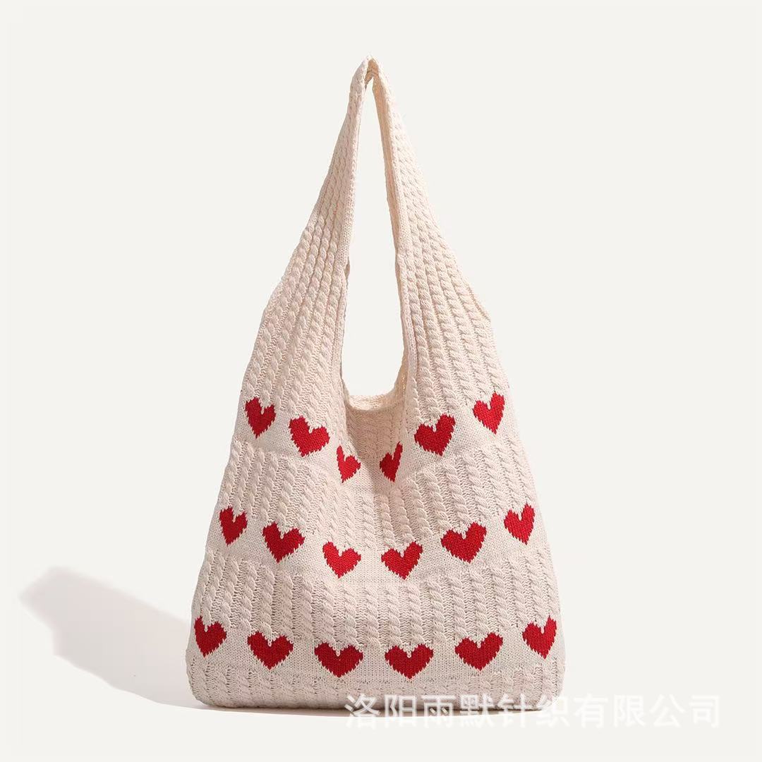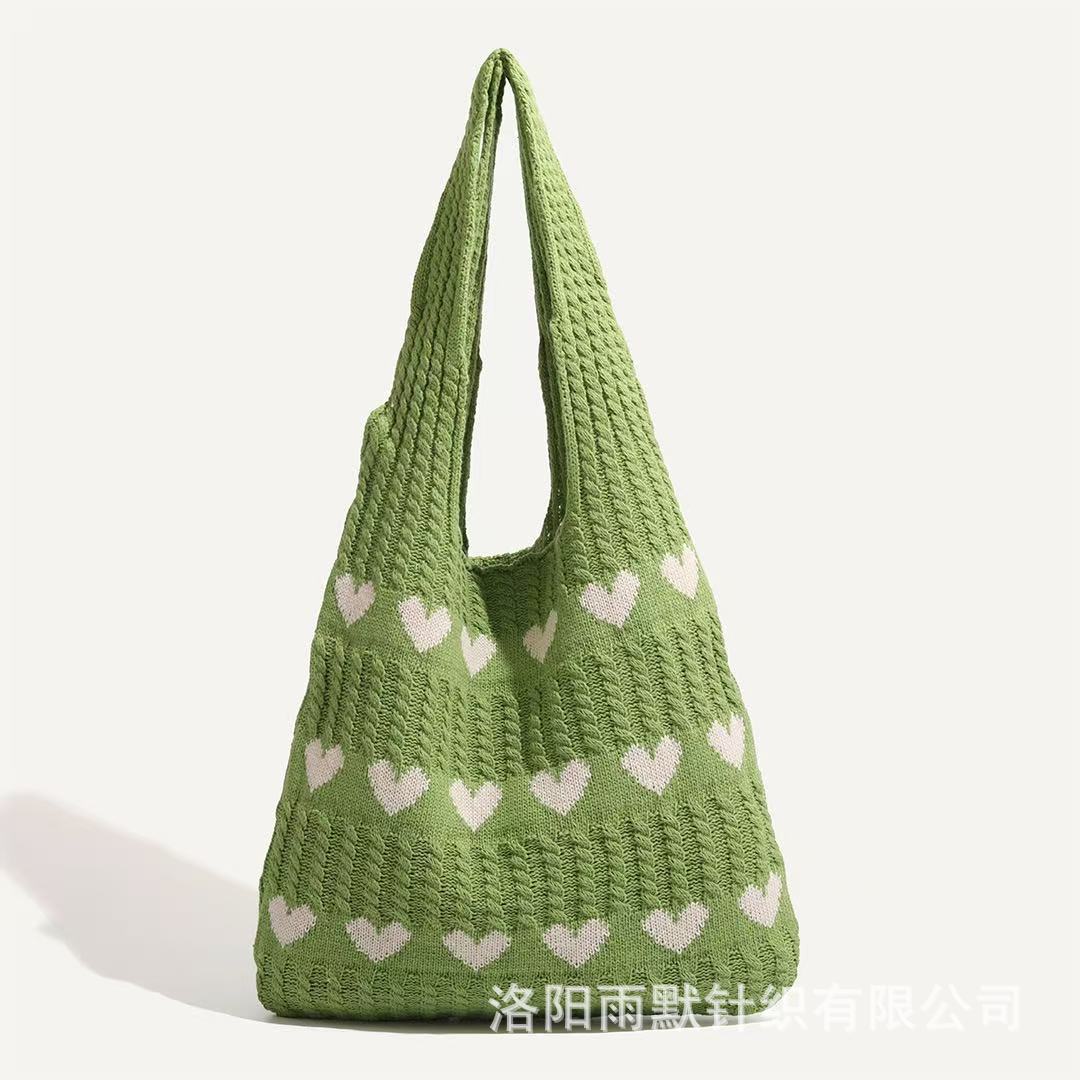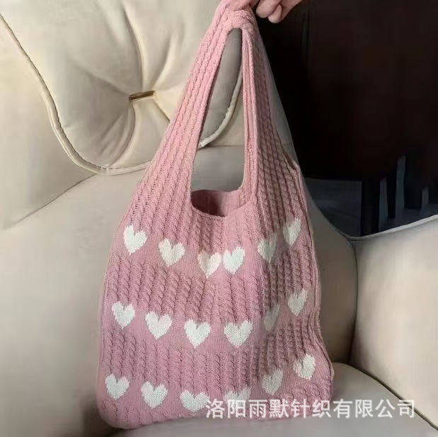 국경 간 모리 니트 러브 토트 백 하이 엔드 센스 절묘한 양모 신선한 간단한 패션 어깨 여성용 쇼핑백스토어 가기