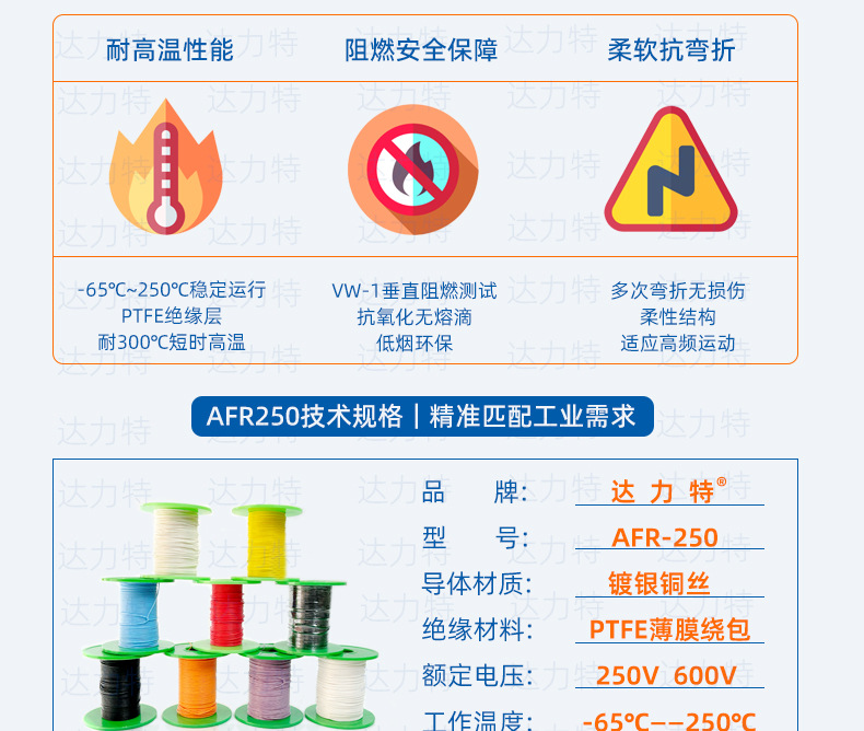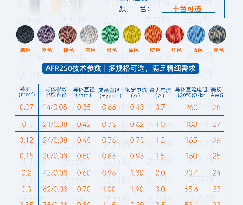 소스 공장 0.3 평방 0.3mm² AFR250 항공 와이어 고온 저항 250 ℃ 절연 난연성 은도금 와이어스토어 가기