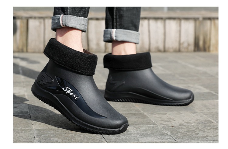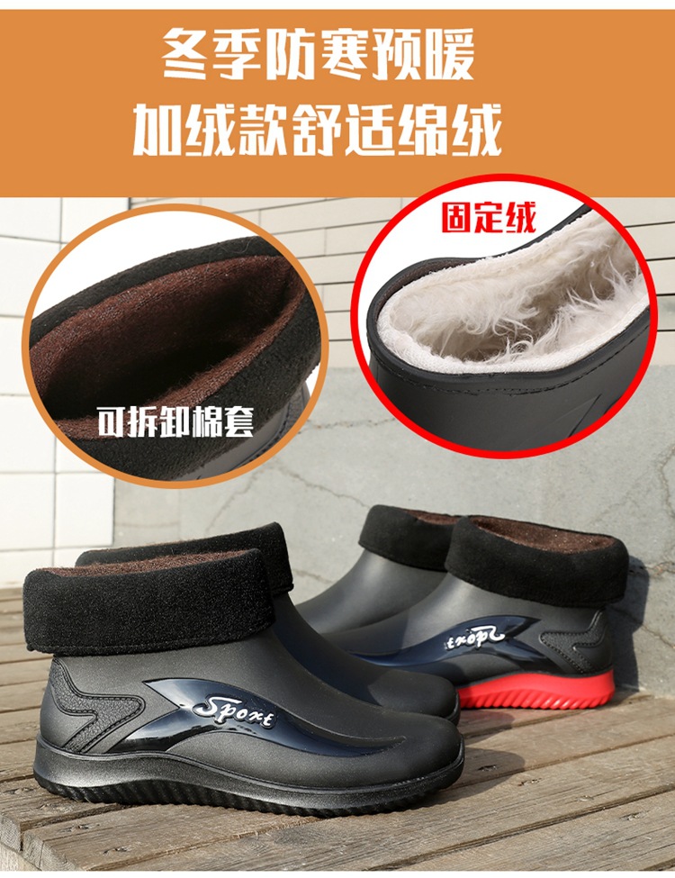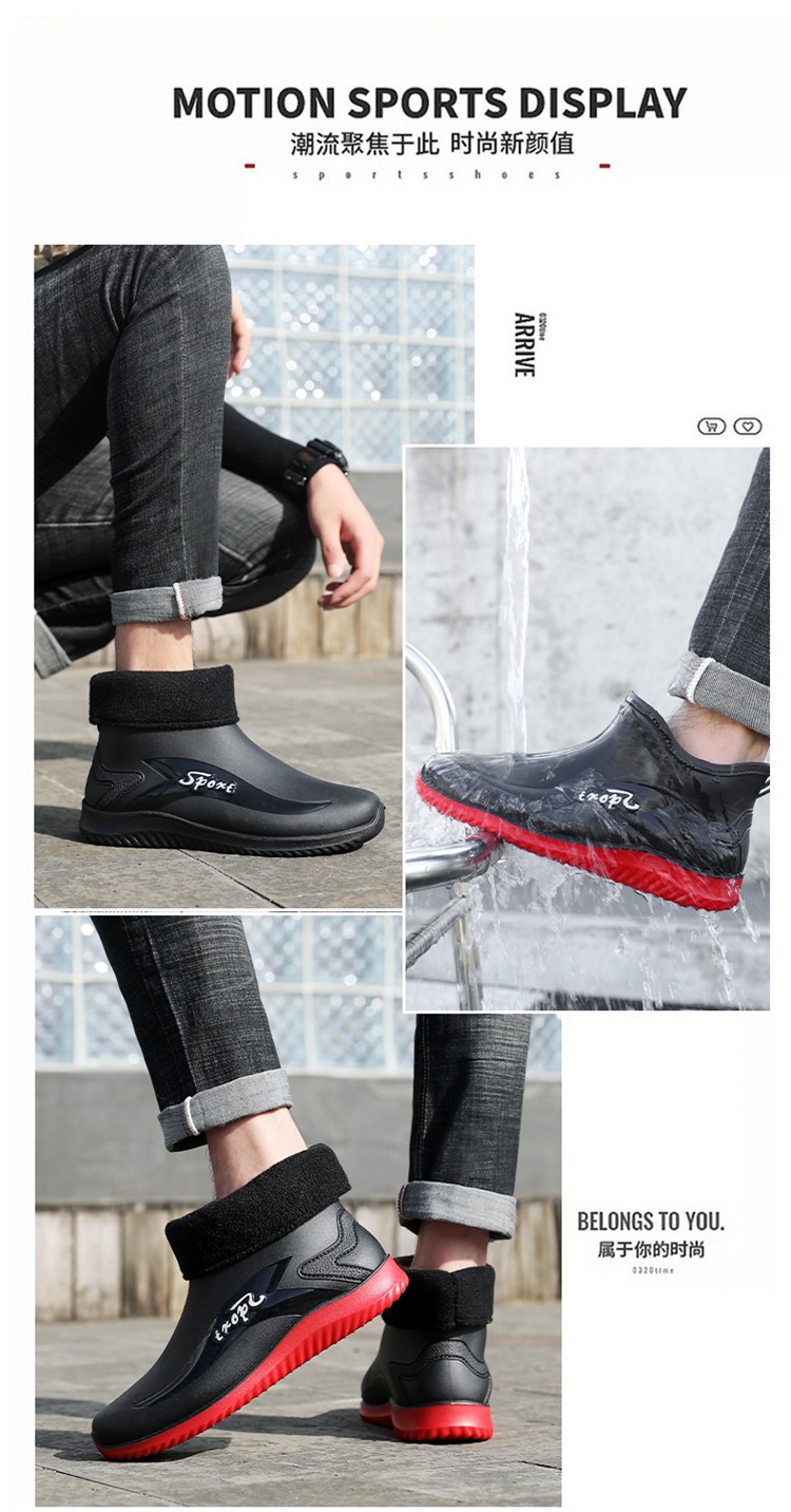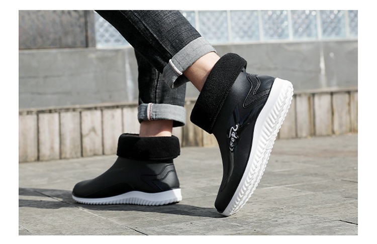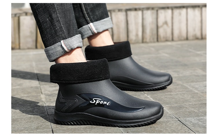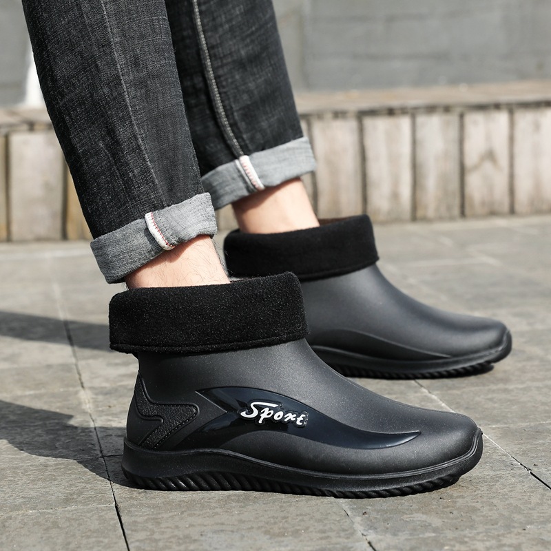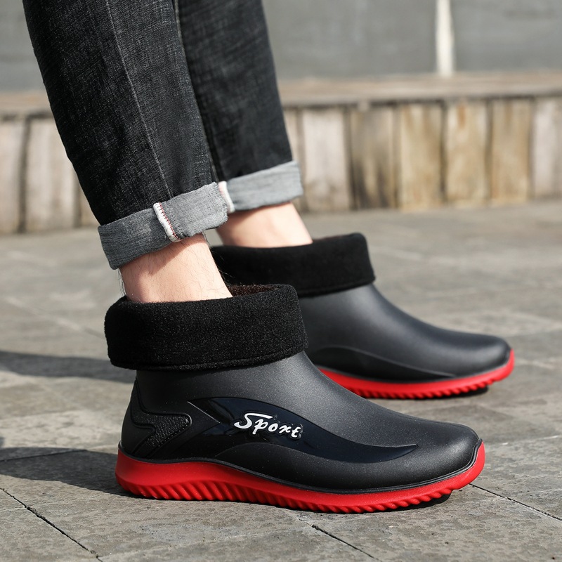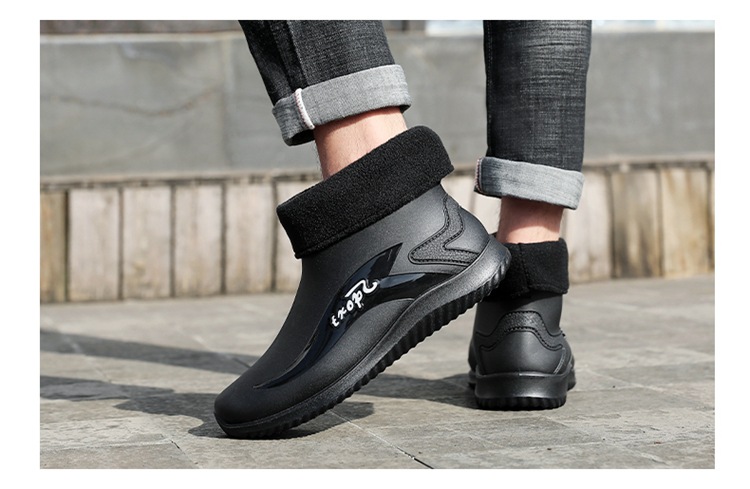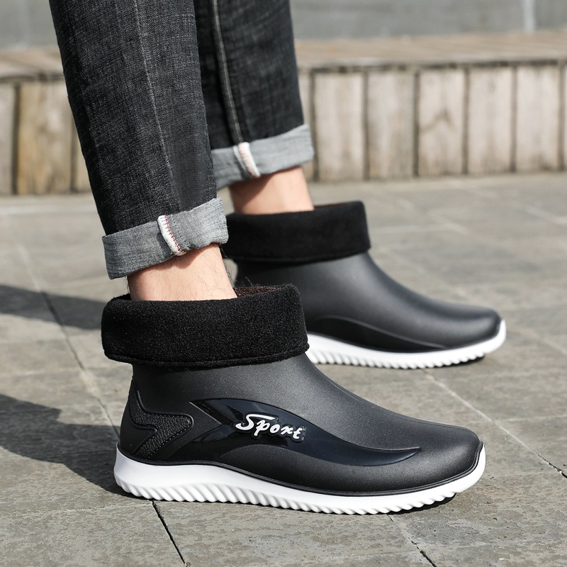 남성용 레인부츠, 캐주얼 방수화, 아우터용 짧은 튜브, 편안한 벨벳 면 고무신, 낚시용 미끄럼 방지, 주방 작업용 두꺼운 밑창