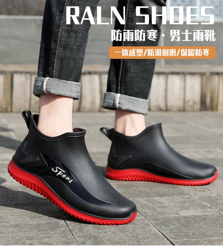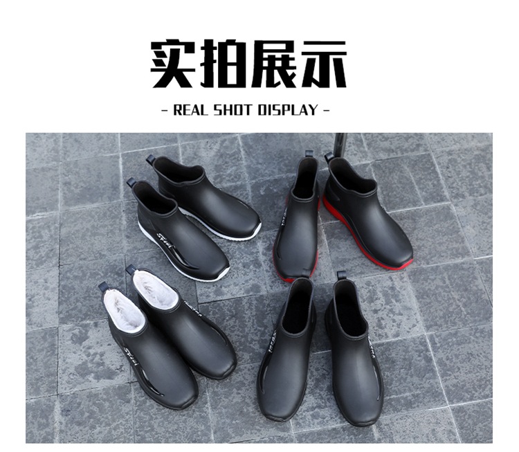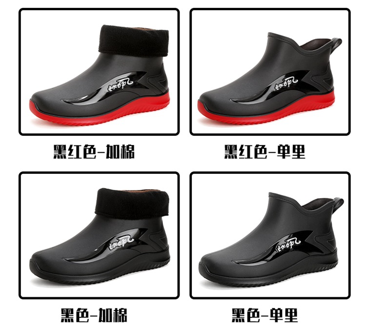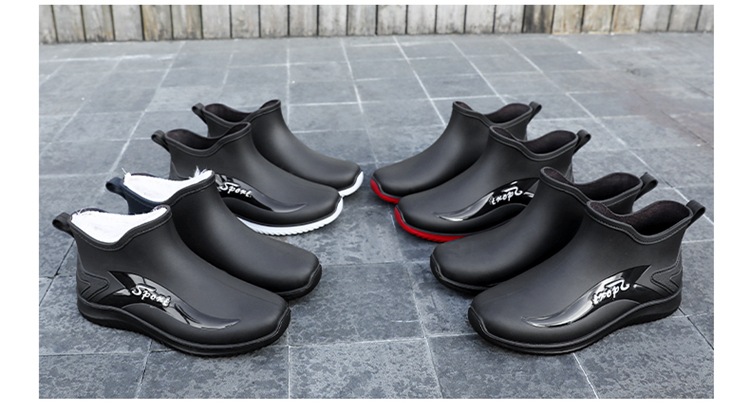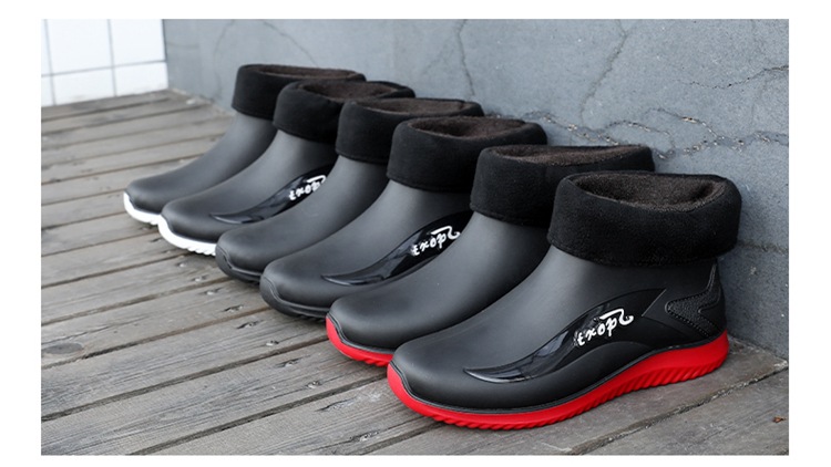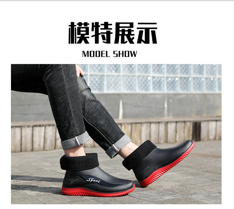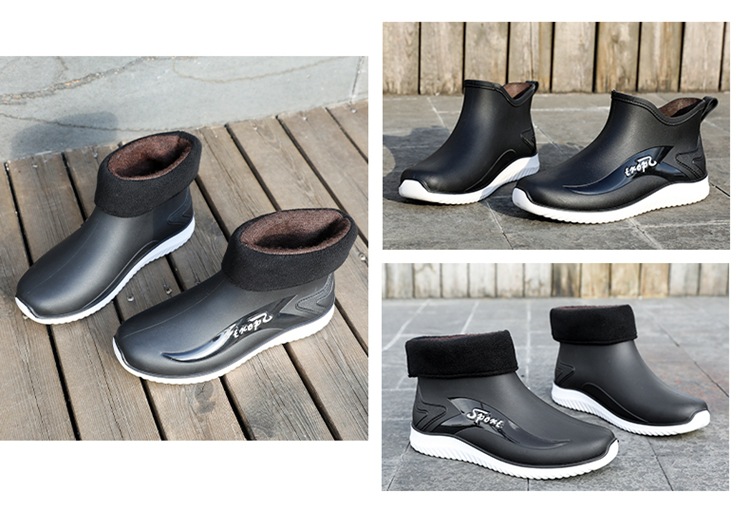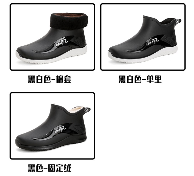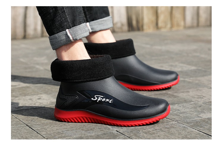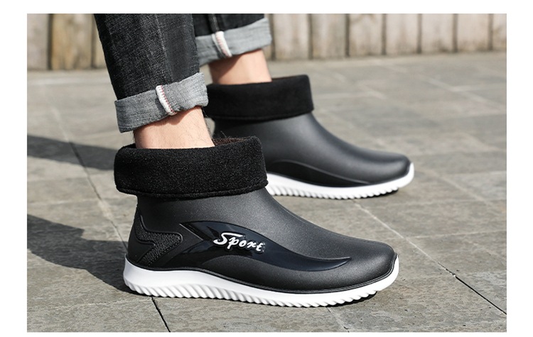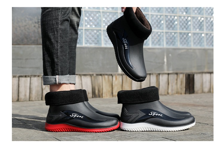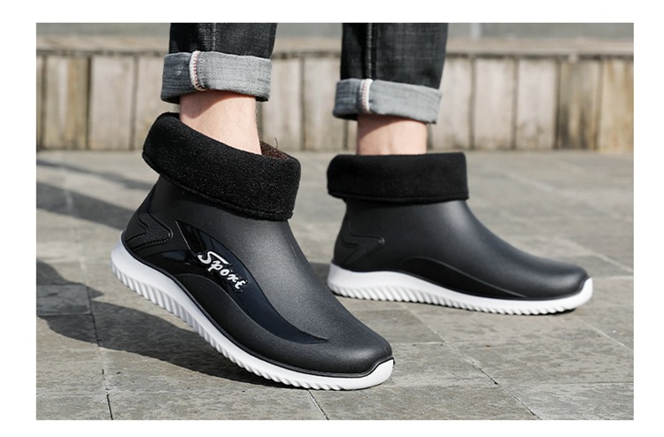 남성용 레인부츠, 캐주얼 방수화, 아우터용 짧은 튜브, 편안한 벨벳 면 고무신, 낚시용 미끄럼 방지, 주방 작업용 두꺼운 밑창