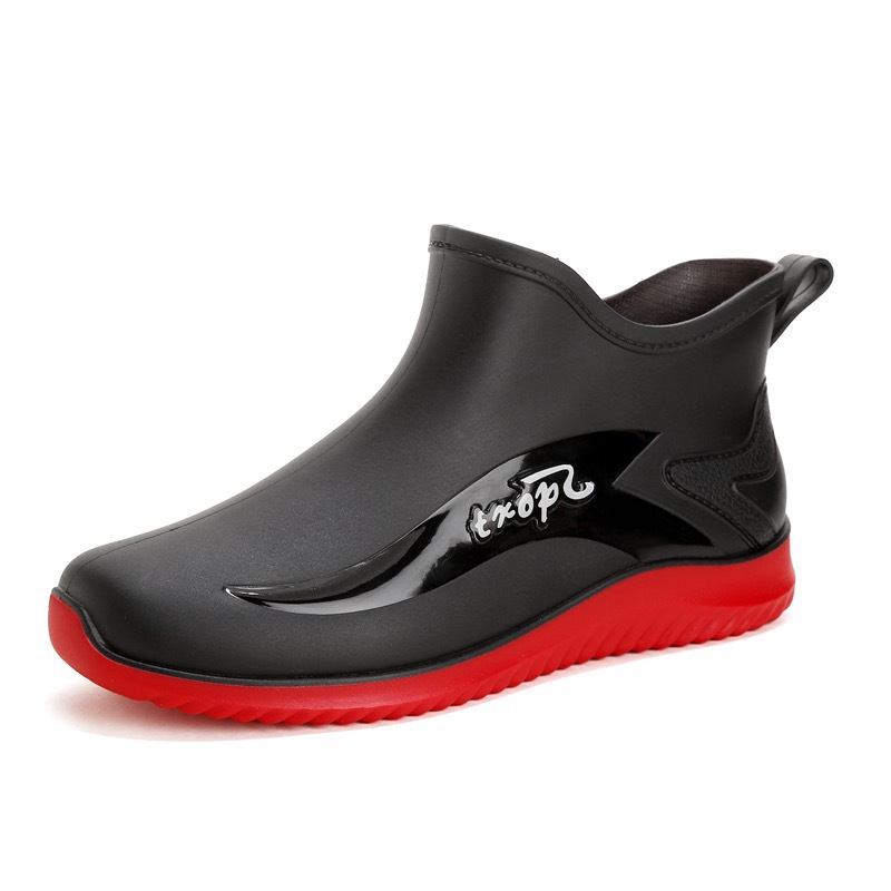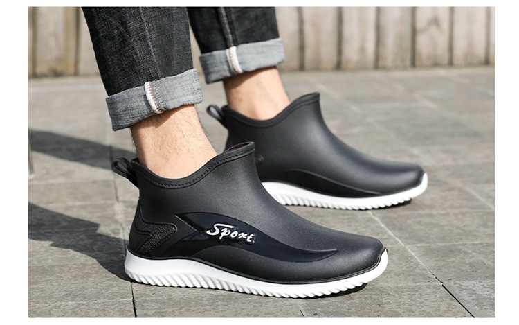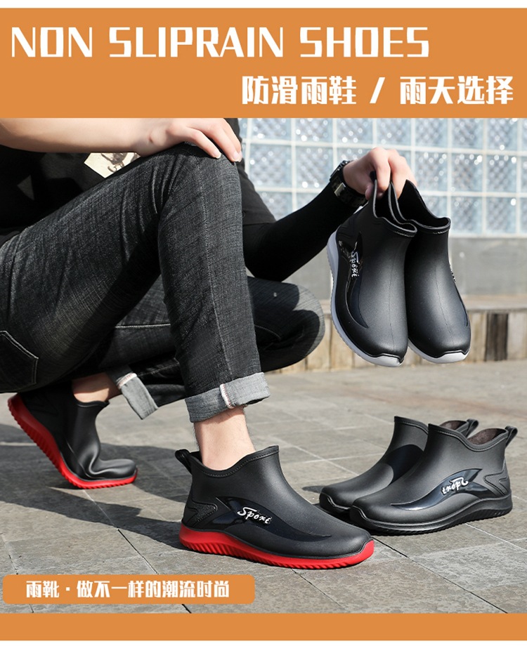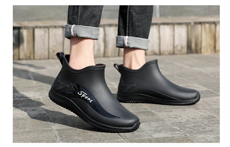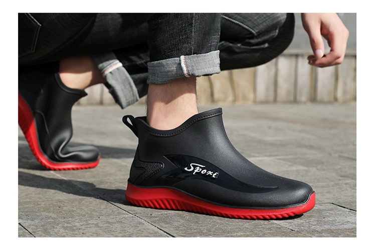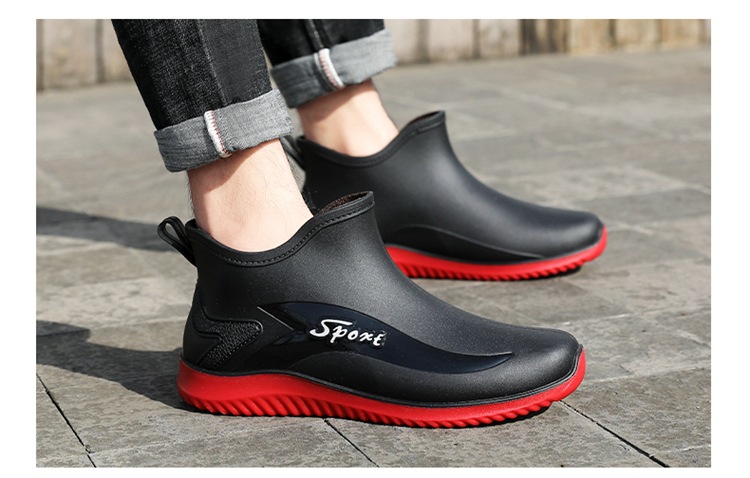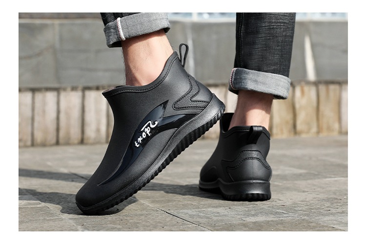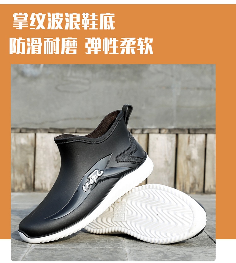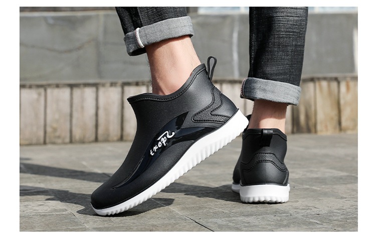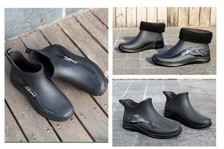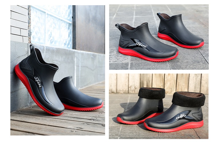 남성용 레인부츠, 캐주얼 방수화, 아우터용 짧은 튜브, 편안한 벨벳 면 고무신, 낚시용 미끄럼 방지, 주방 작업용 두꺼운 밑창