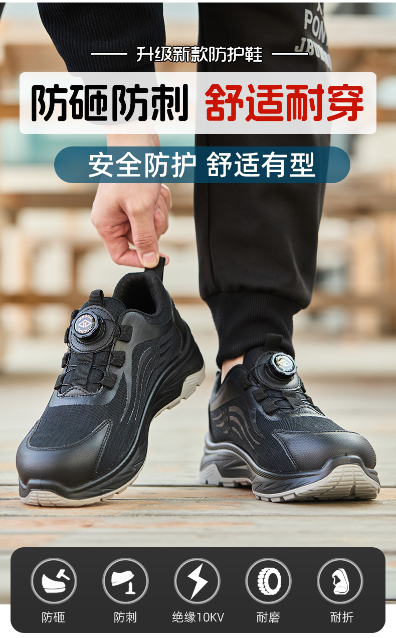 국경 간 회전 버튼 노동 보호 신발 통기성 남성용 스매싱 안티 펑크 스틸 발가락 안전 신발 지능형 버클 작업 보호 신발스토어 가기
