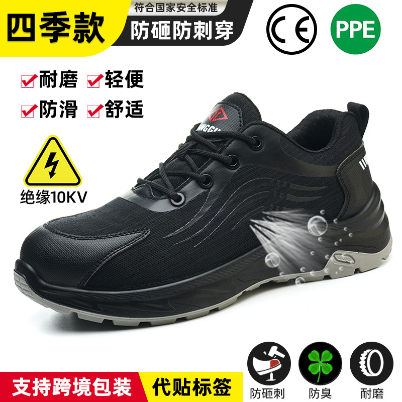 국경 간 회전 버튼 노동 보호 신발 통기성 남성용 스매싱 안티 펑크 스틸 발가락 안전 신발 지능형 버클 작업 보호 신발