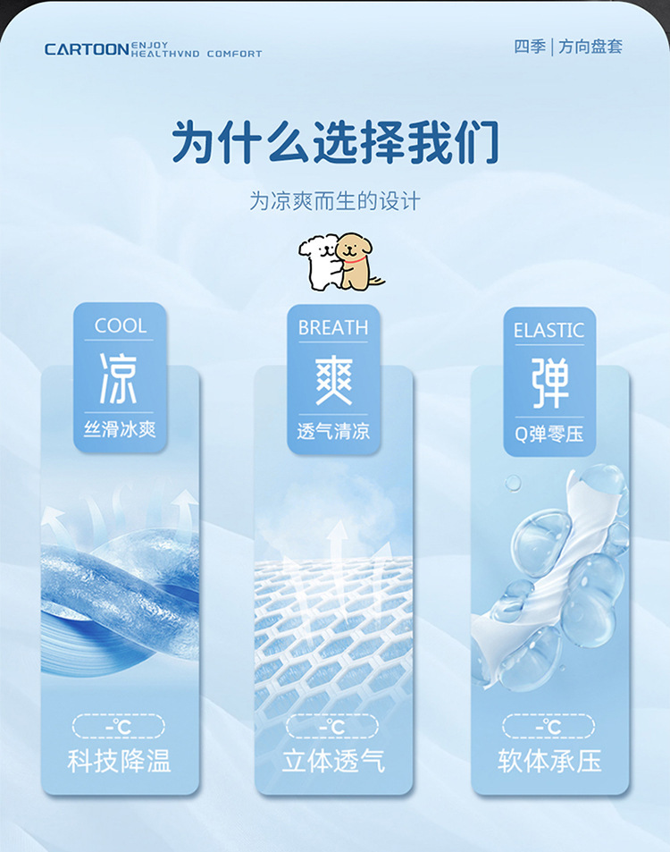 국경 간 구매 및 도매 새로운 얼음 실크 개 자동차 핸들 커버 공장 직접 판매 여름 통기성스토어 가기