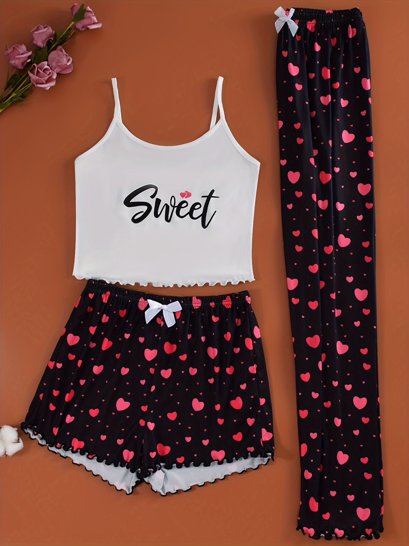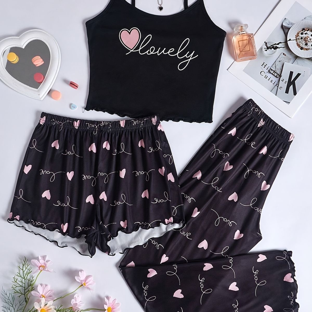 2025 새로운 스타일 홈 의류 여성 잠옷 세트 슬링 인쇄 잠옷 세트 바지 3 조각 만화 7703스토어 가기