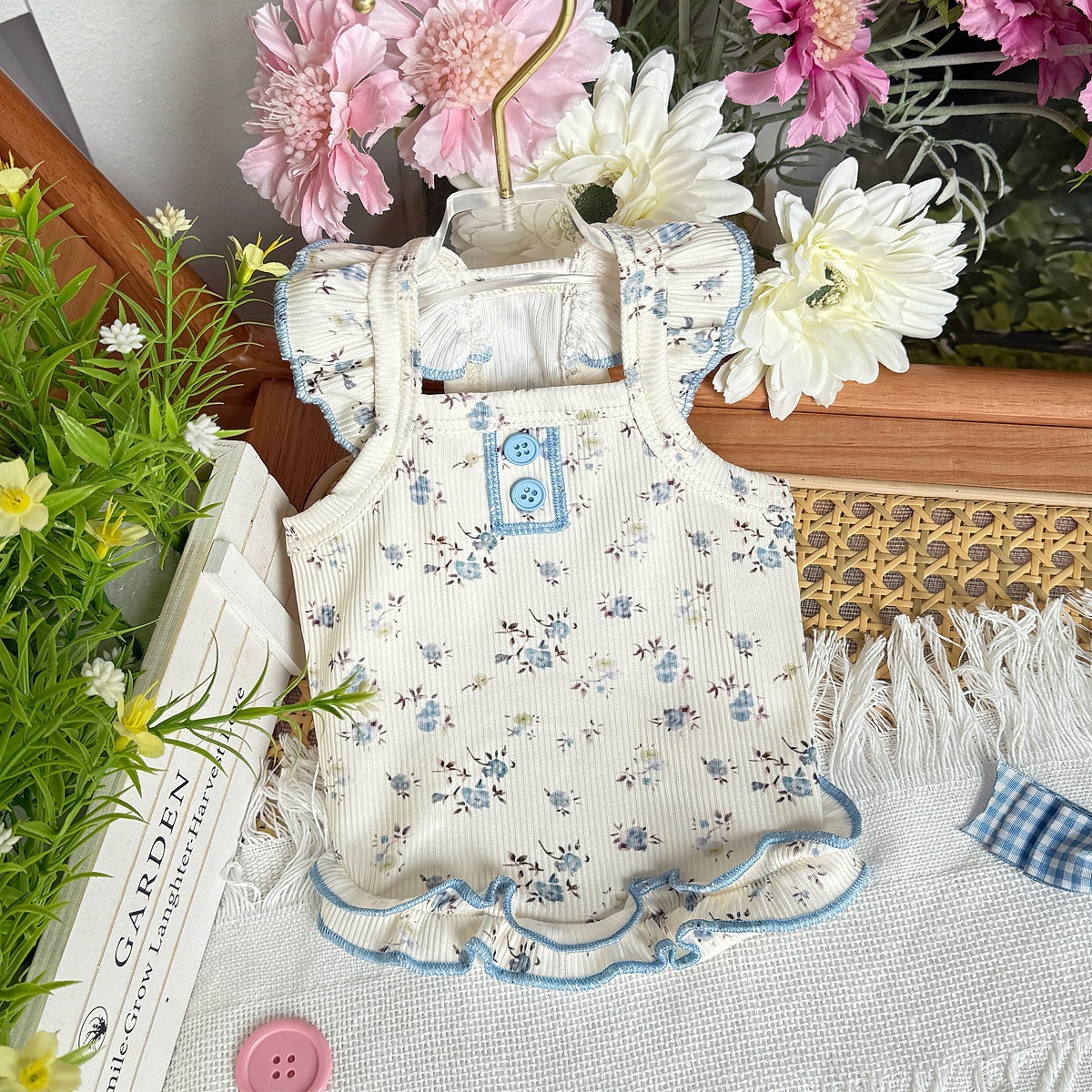 • 파란색 꽃무늬 - 멜빵이 달린 작은 플라잉 슬리브