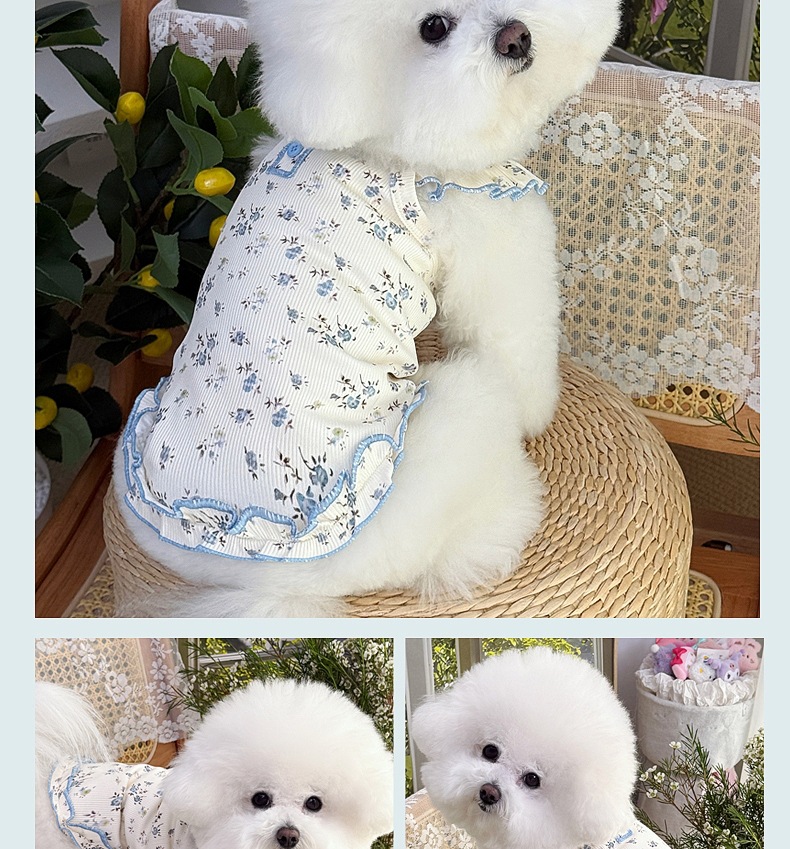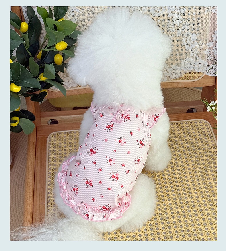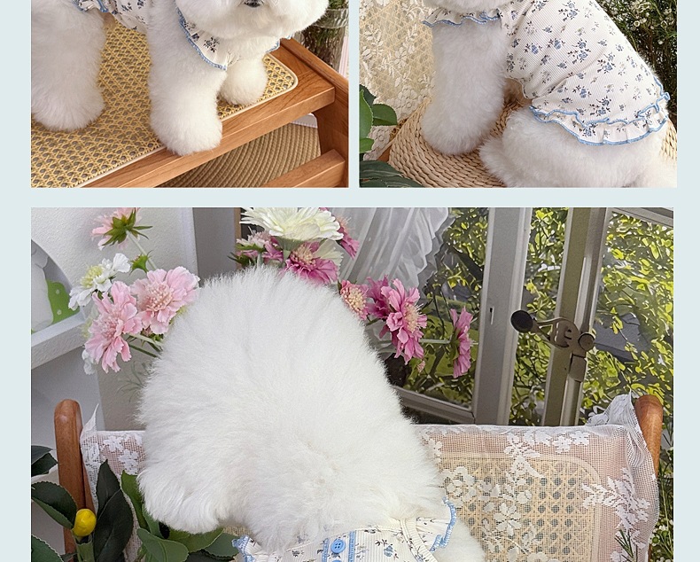 새로운 귀여운 바람 얼음 실크 반려견 고양이 푹신한 원피스 테디 베어는 옷을 당길 수 있습니다 도매