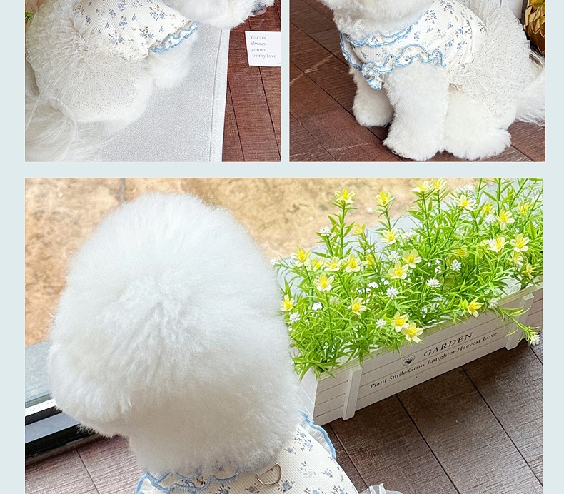 새로운 귀여운 바람 얼음 실크 반려견 고양이 푹신한 원피스 테디 베어는 옷을 당길 수 있습니다 도매스토어 가기