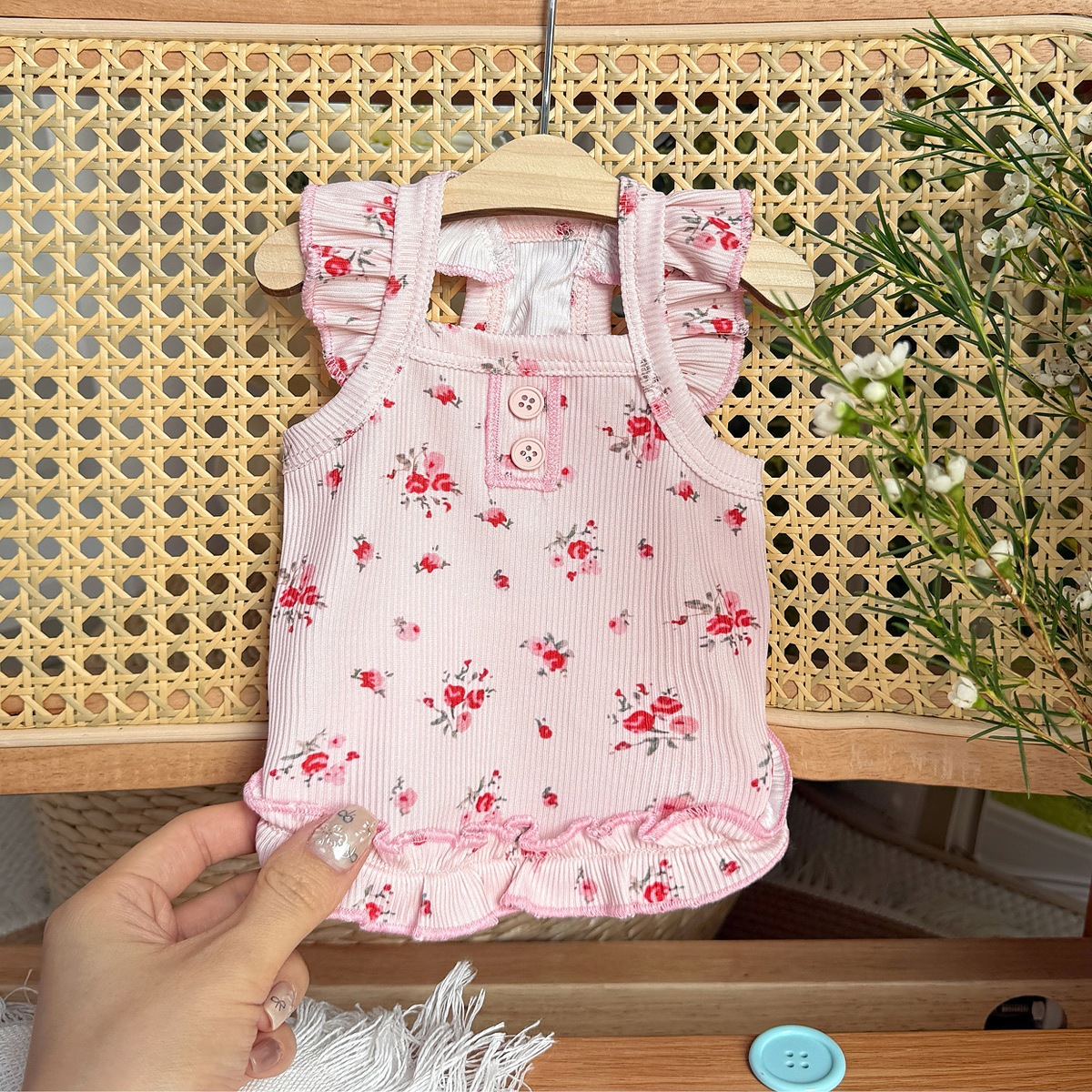 • 핑크색 꽃무늬 - 멜빵이 달린 작은 플라잉 슬리브