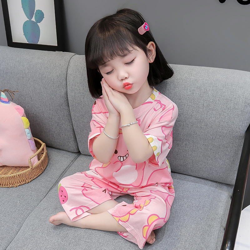 어린이 잠옷 모달 2025 여름 얇은 어린 소녀 정장 아기 에어컨 옷 여름 소녀 가정 옷스토어 가기