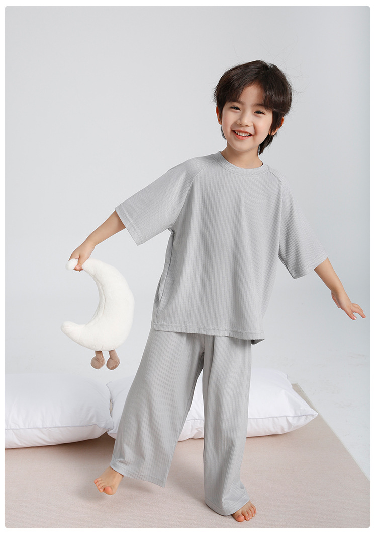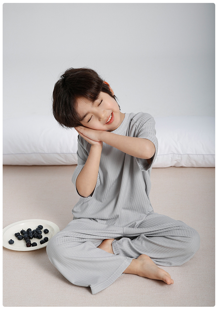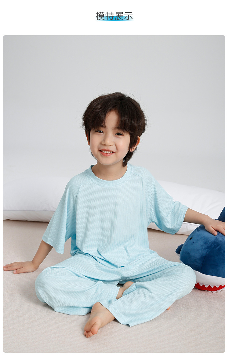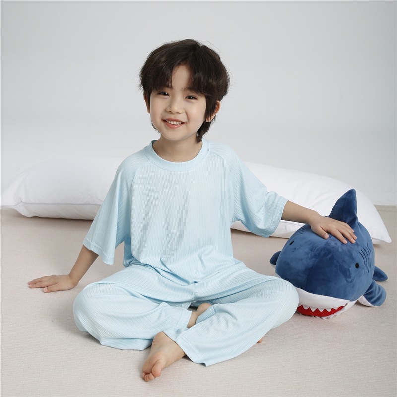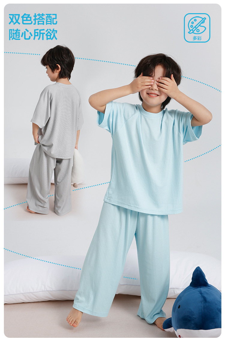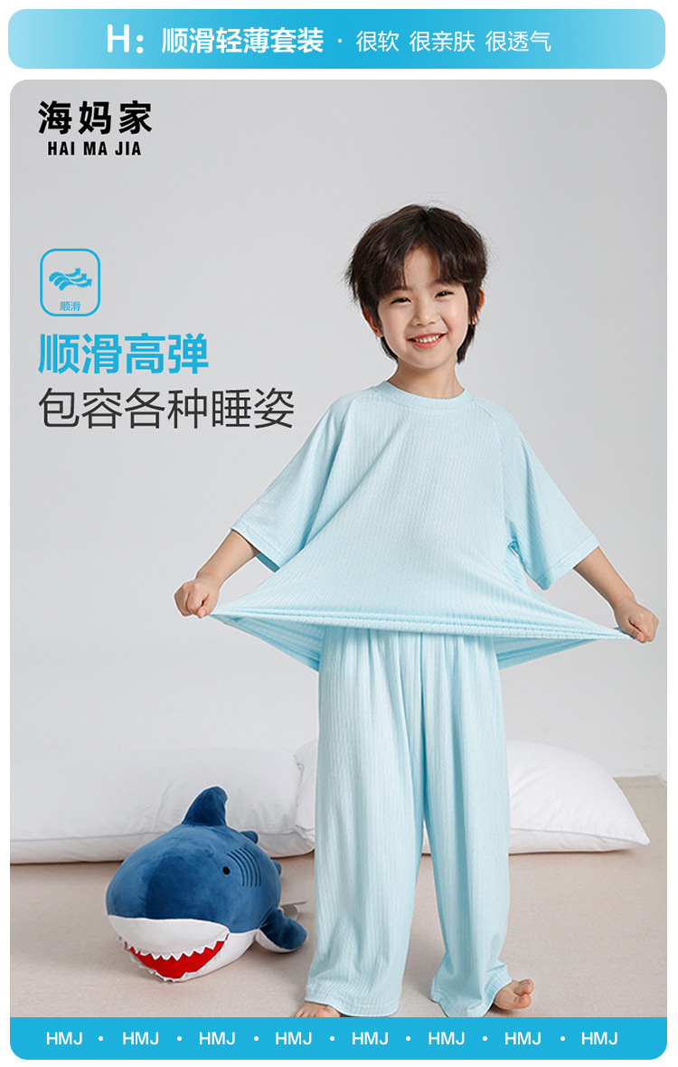 하이마의 2026년 여름 신상 아동 홈웨어 세트, 가볍고 얇은 반팔 반바지 잠옷 투피스 세트 (남아용)