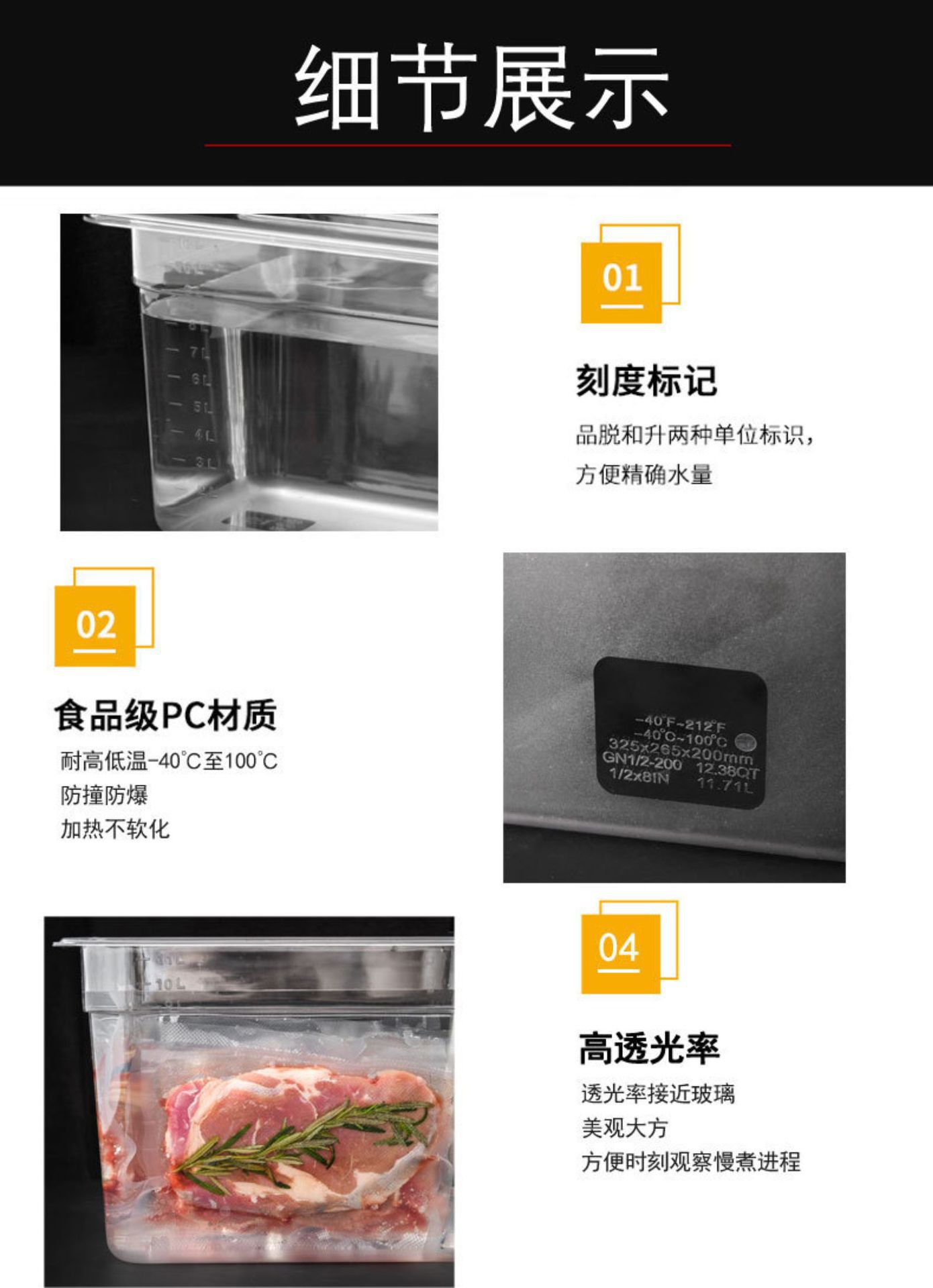 뚜껑 개방형 수비드 용기가 있는 저온 슬로우 쿠커용 특수 물탱크 6L/11L/25L